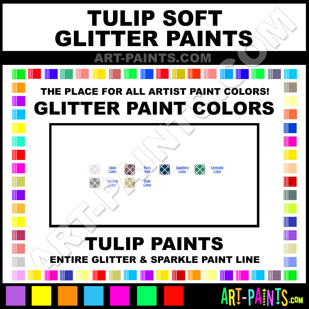 Tulip knows Glitter Paints, whether it be for Metallics, Shimmers, Pearlescents or Iridescents! They make a wonderful brand of Paint called Tulip Soft Glitter Glitter Colors that suits all types of Artists. They strive to perfect the process of color and are one of the most popular Glitter Paint companies in the world. Enjoy their entire paint brand collection from the list below. Tulip makes wonderful Artists Paints that everyone is sure to enjoy! Choose a Glitter Paint below to view that Hue or Color.     -Art-Paints.com