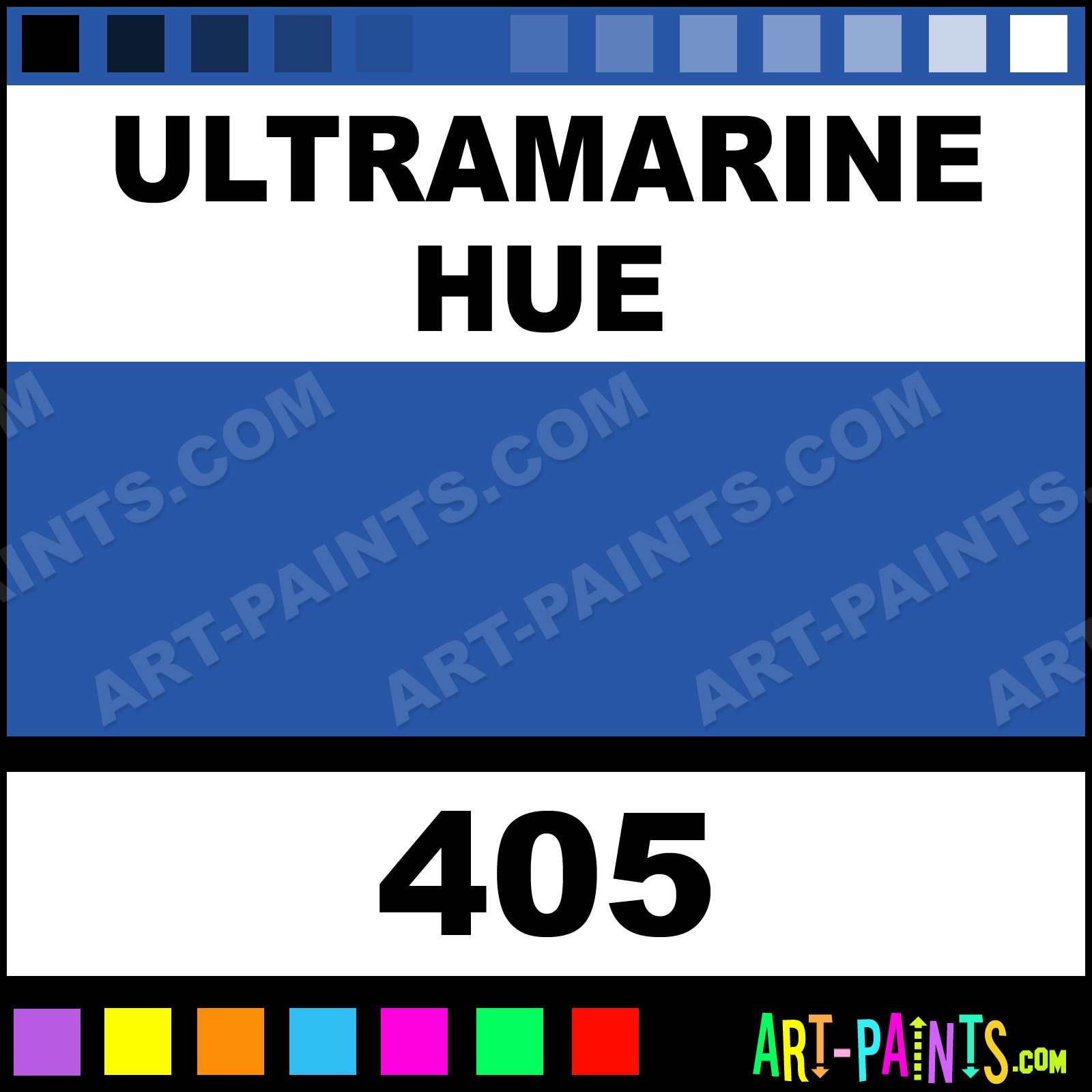 This beautiful Fine Artist Gouache shade is called Ultramarine, and comes from a company called Akademie. Their product number, along with the HTML color code, RGB, and CMYK codes are listed below. This Beautiful Shade of Ultramarine and others can be found in the Akademie Fine Artist Art Paint Gallery! Also be sure to browse through the other wonderful Professional Color Galleries to see more of Akademie Fine Artist Gouache Brand Paints and other Paint Manufacturers. And as always, Paint Paint Paint! -Art-Paints.com