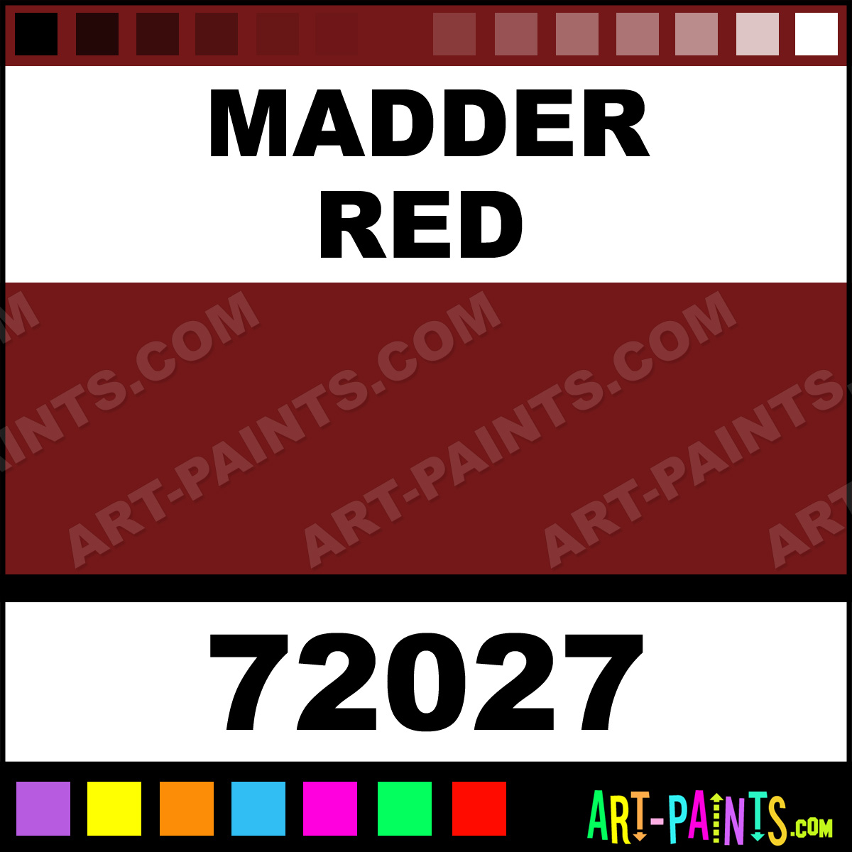This beautiful Finest Artist 13 Set Gouache shade is called Madder Red, and comes from a company called Calligraphy. Their product number, along with the HTML color code, RGB, and CMYK codes are listed below. This Beautiful Shade of Madder Red and others can be found in the Calligraphy Finest Artist 13 Set Art Paint Gallery! Also be sure to browse through the other wonderful Professional Color Galleries to see more of Calligraphy Finest Artist 13 Set Gouache Brand Paints and other Paint Manufacturers. And as always, Paint Paint Paint! -Art-Paints.com