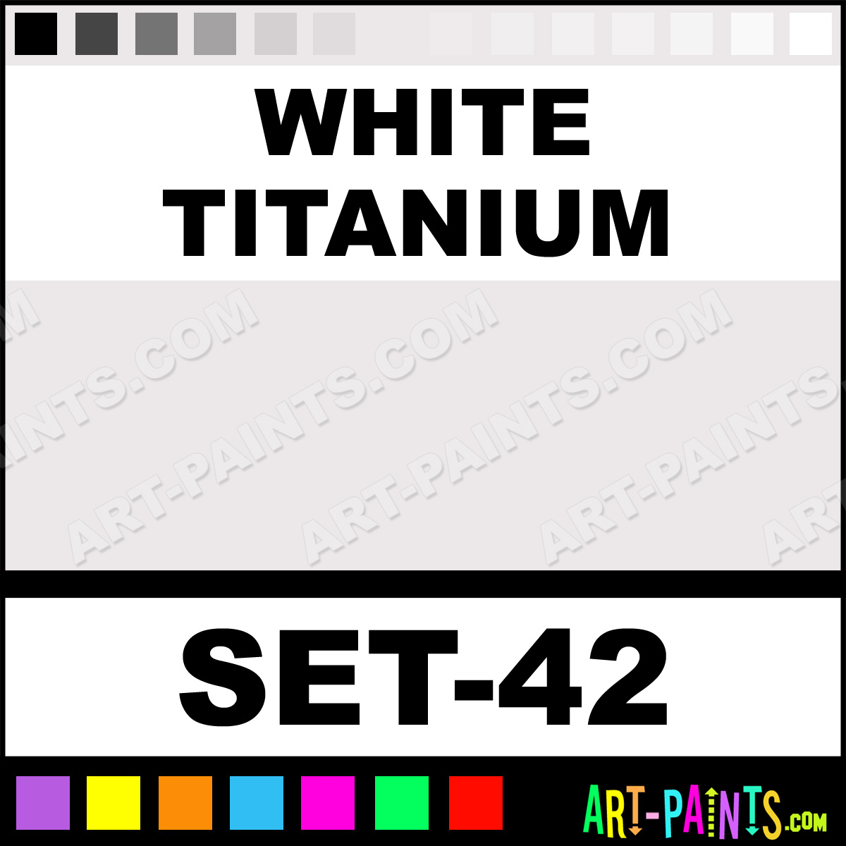 This beautiful Artist 10 Set Gouache shade is called White Titanium, and comes from a company called Da Vinci. Their product number, along with the HTML color code, RGB, and CMYK codes are listed below. This Beautiful Shade of White Titanium and others can be found in the Da Vinci Artist 10 Set Art Paint Gallery! Also be sure to browse through the other wonderful Professional Color Galleries to see more of Da Vinci Artist 10 Set Gouache Brand Paints and other Paint Manufacturers. And as always, Paint Paint Paint! -Art-Paints.com