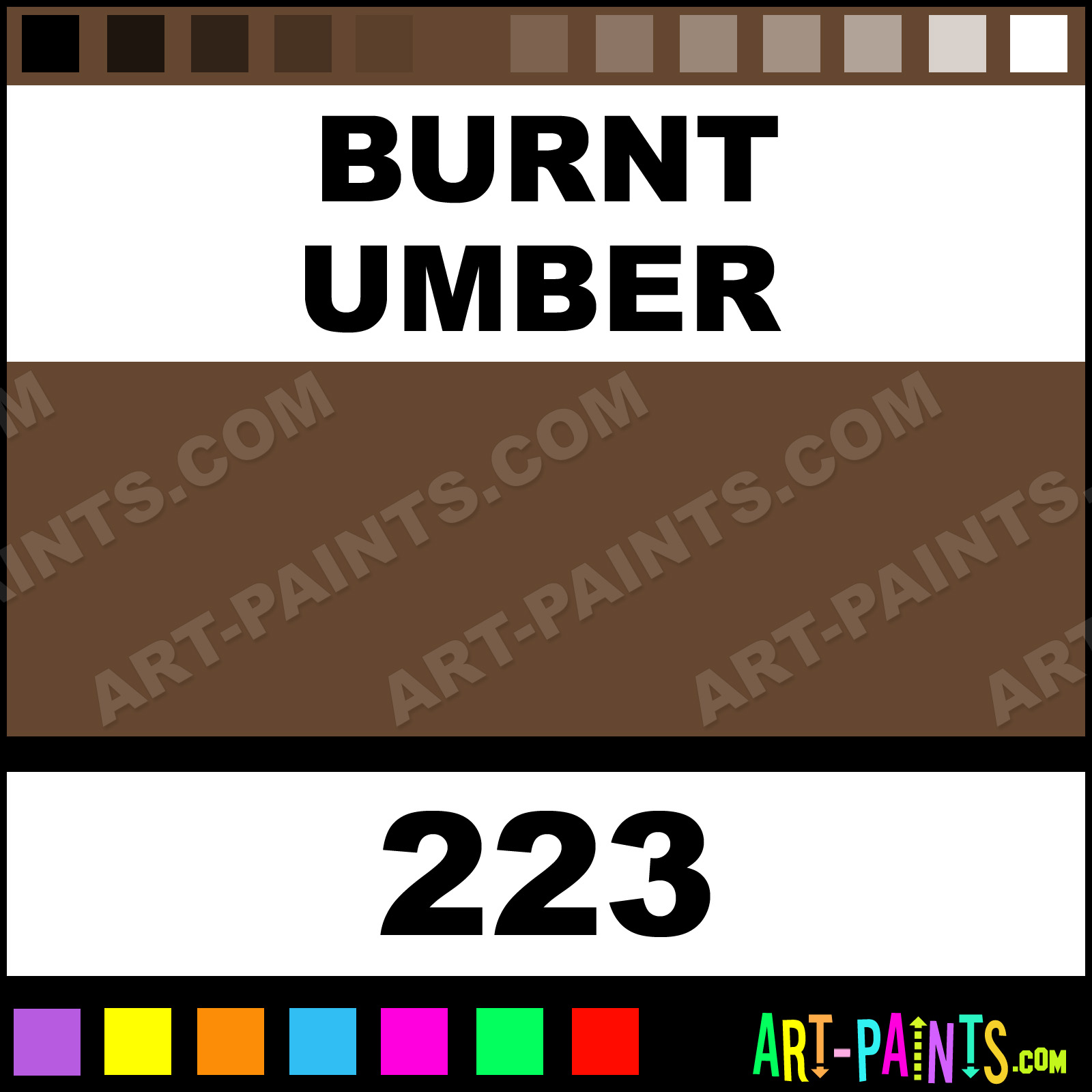 This beautiful Designer Gouache shade is called Burnt Umber, and comes from a company called Daler Rowney. Their product number, along with the HTML color code, RGB, and CMYK codes are listed below. This Beautiful Shade of Burnt Umber and others can be found in the Daler Rowney Designer Art Paint Gallery! Also be sure to browse through the other wonderful Professional Color Galleries to see more of Daler Rowney Designer Gouache Brand Paints and other Paint Manufacturers. And as always, Paint Paint Paint! -Art-Paints.com