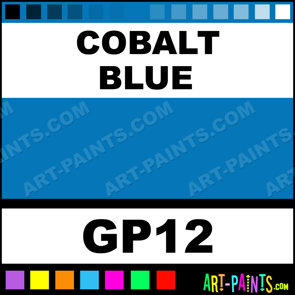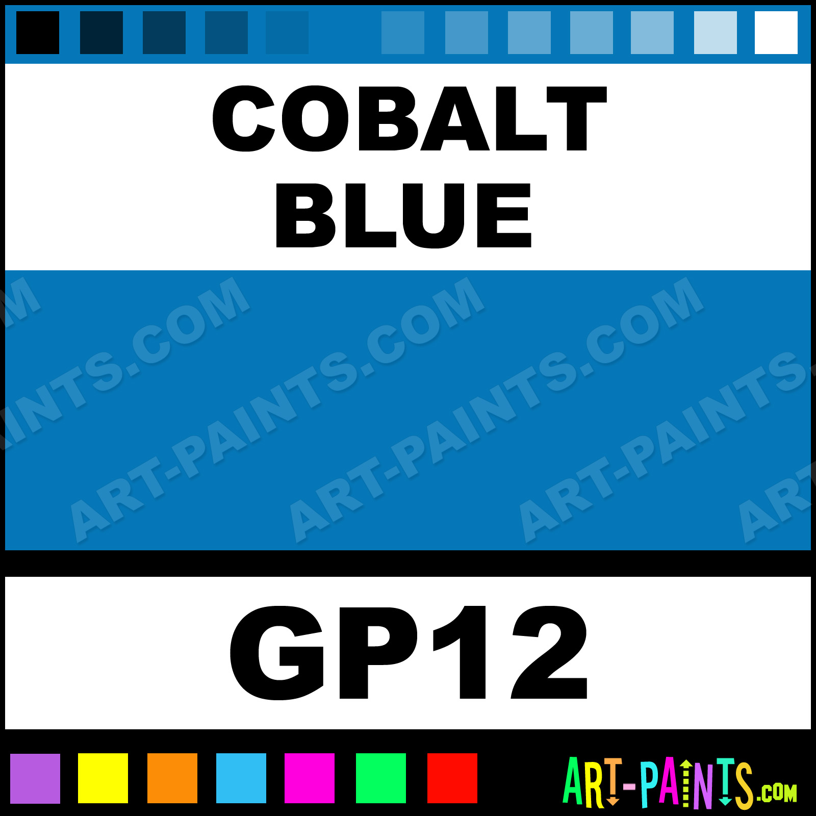 This beautiful Artist 12 Gouache shade is called Cobalt Blue, and comes from a company called Francheville. Their product number, along with the HTML color code, RGB, and CMYK codes are listed below. This Beautiful Shade of Cobalt Blue and others can be found in the Francheville Artist 12 Art Paint Gallery! Also be sure to browse through the other wonderful Professional Color Galleries to see more of Francheville Artist 12 Gouache Brand Paints and other Paint Manufacturers. And as always, Paint Paint Paint! -Art-Paints.com