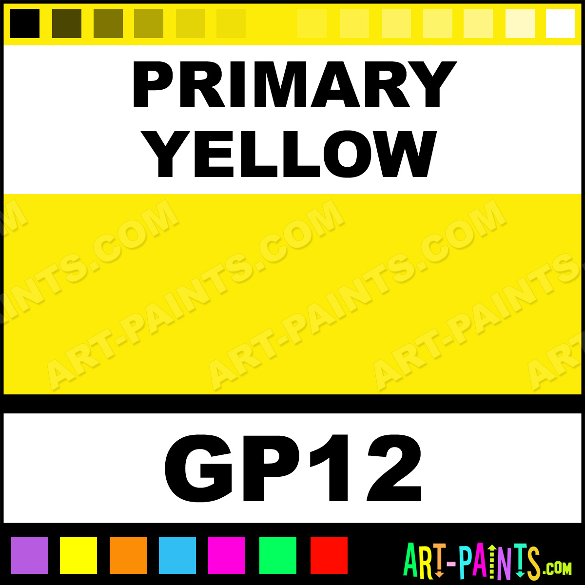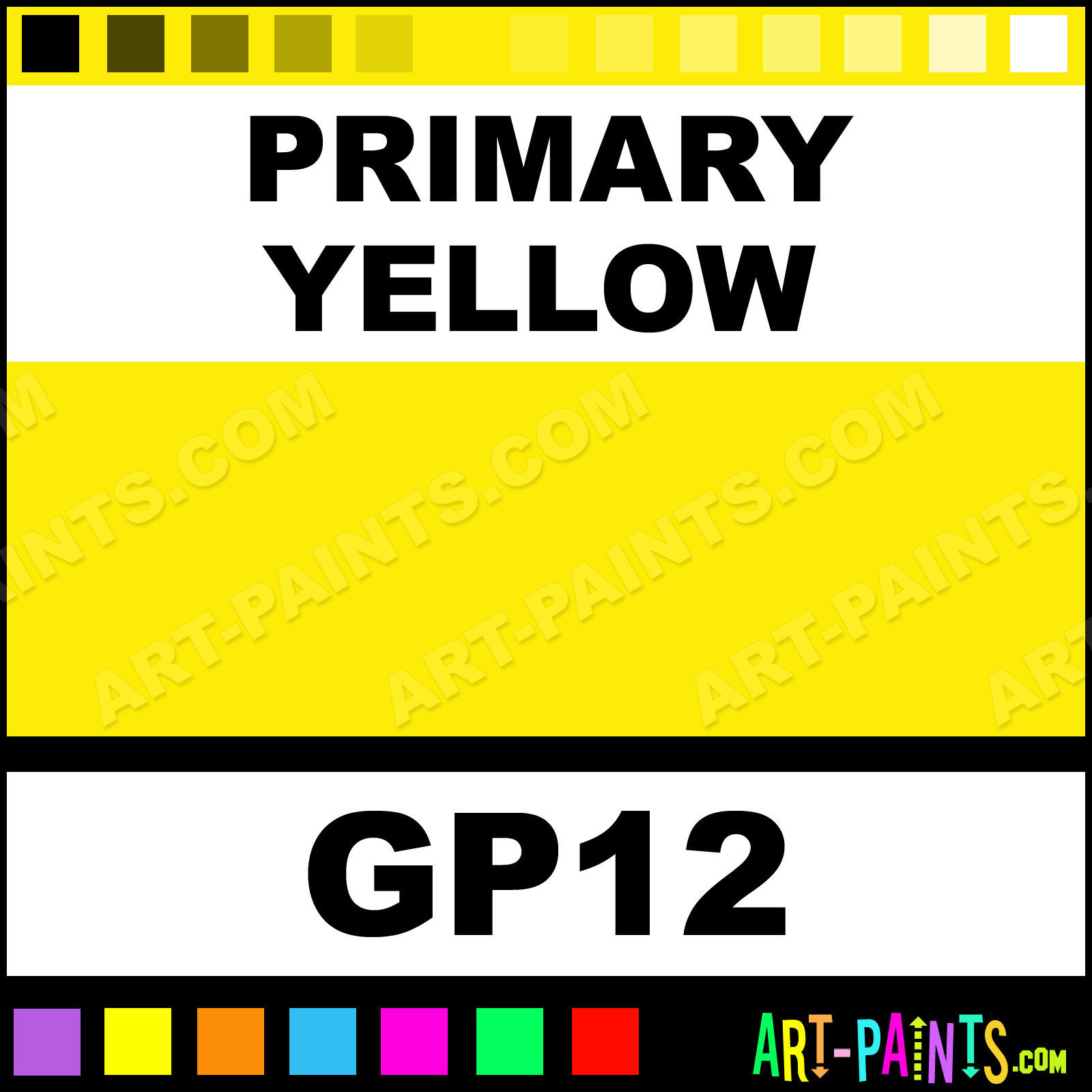 This beautiful Artist 12 Gouache shade is called Primary Yellow, and comes from a company called Francheville. Their product number, along with the HTML color code, RGB, and CMYK codes are listed below. This Beautiful Shade of Primary Yellow and others can be found in the Francheville Artist 12 Art Paint Gallery! Also be sure to browse through the other wonderful Professional Color Galleries to see more of Francheville Artist 12 Gouache Brand Paints and other Paint Manufacturers. And as always, Paint Paint Paint! -Art-Paints.com