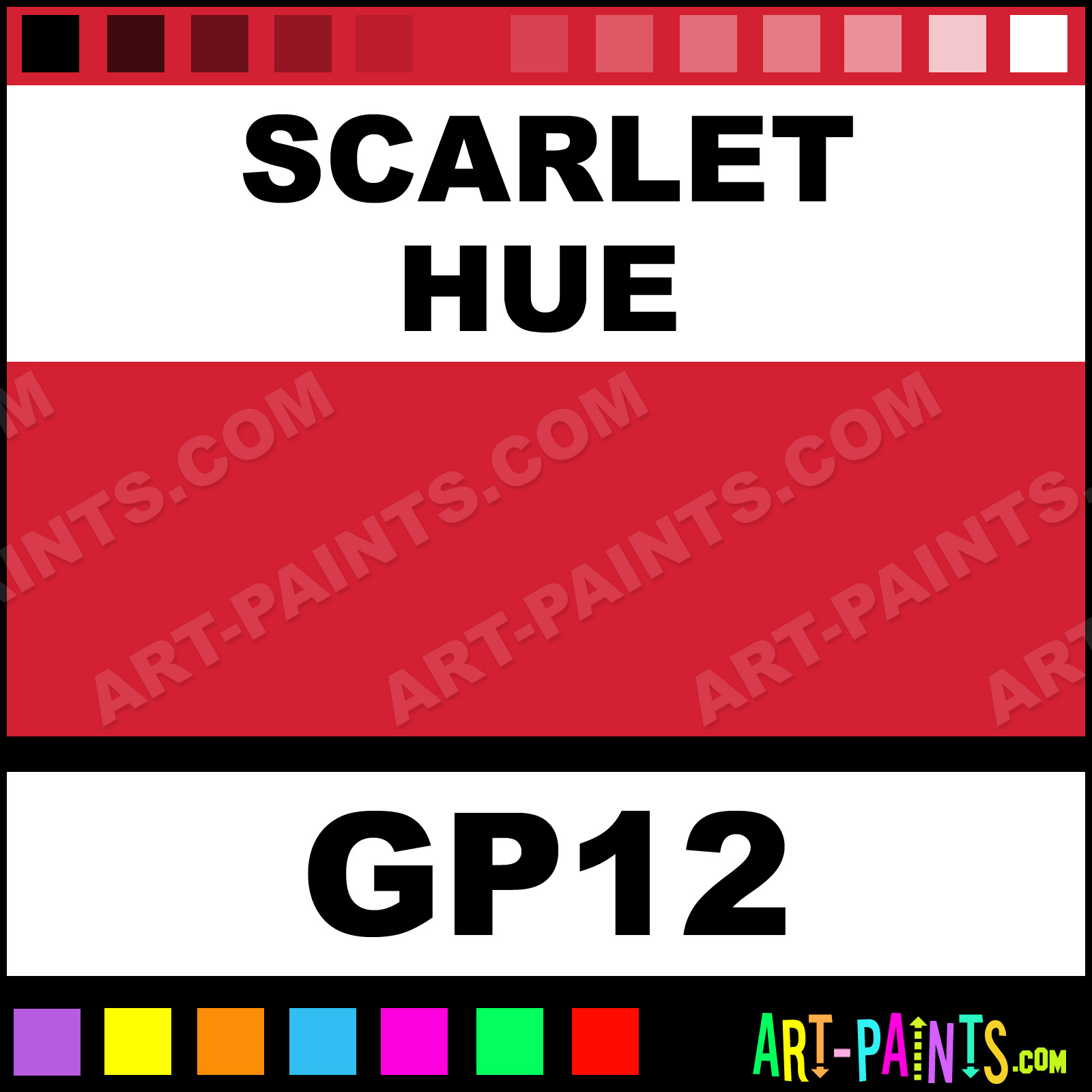This beautiful Artist 12 Gouache shade is called Scarlet, and comes from a company called Francheville. Their product number, along with the HTML color code, RGB, and CMYK codes are listed below. This Beautiful Shade of Scarlet and others can be found in the Francheville Artist 12 Art Paint Gallery! Also be sure to browse through the other wonderful Professional Color Galleries to see more of Francheville Artist 12 Gouache Brand Paints and other Paint Manufacturers. And as always, Paint Paint Paint! -Art-Paints.com