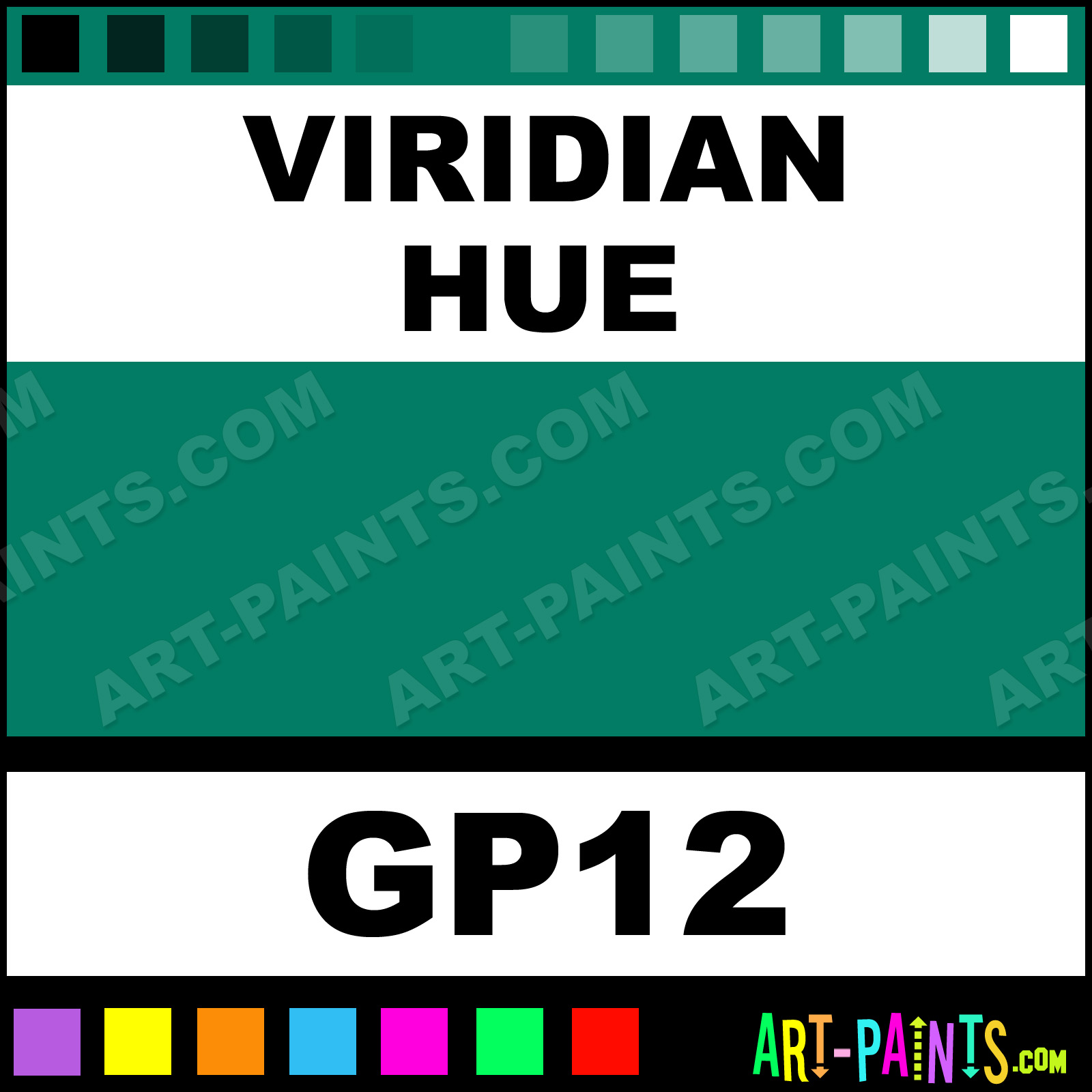 This beautiful Artist 12 Gouache shade is called Viridian, and comes from a company called Francheville. Their product number, along with the HTML color code, RGB, and CMYK codes are listed below. This Beautiful Shade of Viridian and others can be found in the Francheville Artist 12 Art Paint Gallery! Also be sure to browse through the other wonderful Professional Color Galleries to see more of Francheville Artist 12 Gouache Brand Paints and other Paint Manufacturers. And as always, Paint Paint Paint! -Art-Paints.com