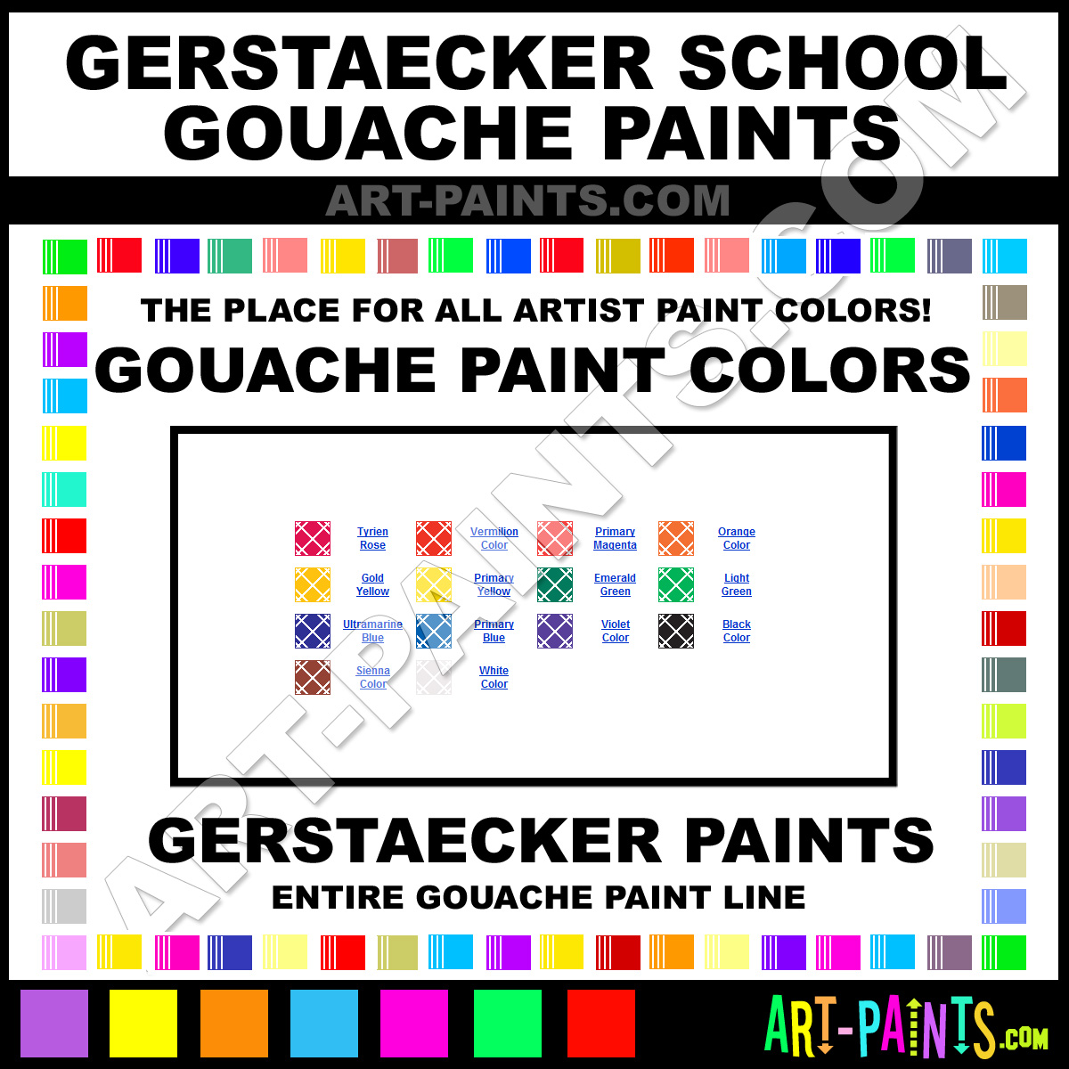 Gerstaecker knows Gouache paints! They make a wonderful brand of paint called Gerstaecker School Gouache Colors that suits all types of artists. They strive to perfect the process of color and are one of the most popular Gouache Paint Brand companies in the world. Enjoy their entire paint brand collection from the list below. Gerstaecker makes wonderful Artists Paints that everyone is sure to enjoy! Choose an Gouache Paint Color below to view that Hue and all their great related color paints. Paint on!     -Art-Paints.com