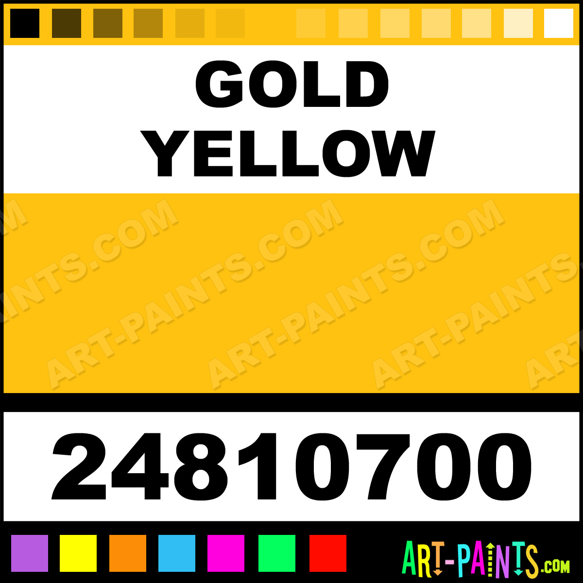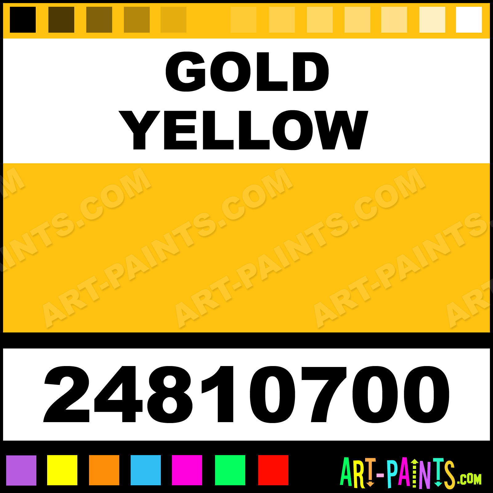 This beautiful School Gouache shade is called Gold Yellow, and comes from a company called Gerstaecker. Their product number, along with the HTML color code, RGB, and CMYK codes are listed below. This Beautiful Shade of Gold Yellow and others can be found in the Gerstaecker School Art Paint Gallery! Also be sure to browse through the other wonderful Professional Color Galleries to see more of Gerstaecker School Gouache Brand Paints and other Paint Manufacturers. And as always, Paint Paint Paint! -Art-Paints.com