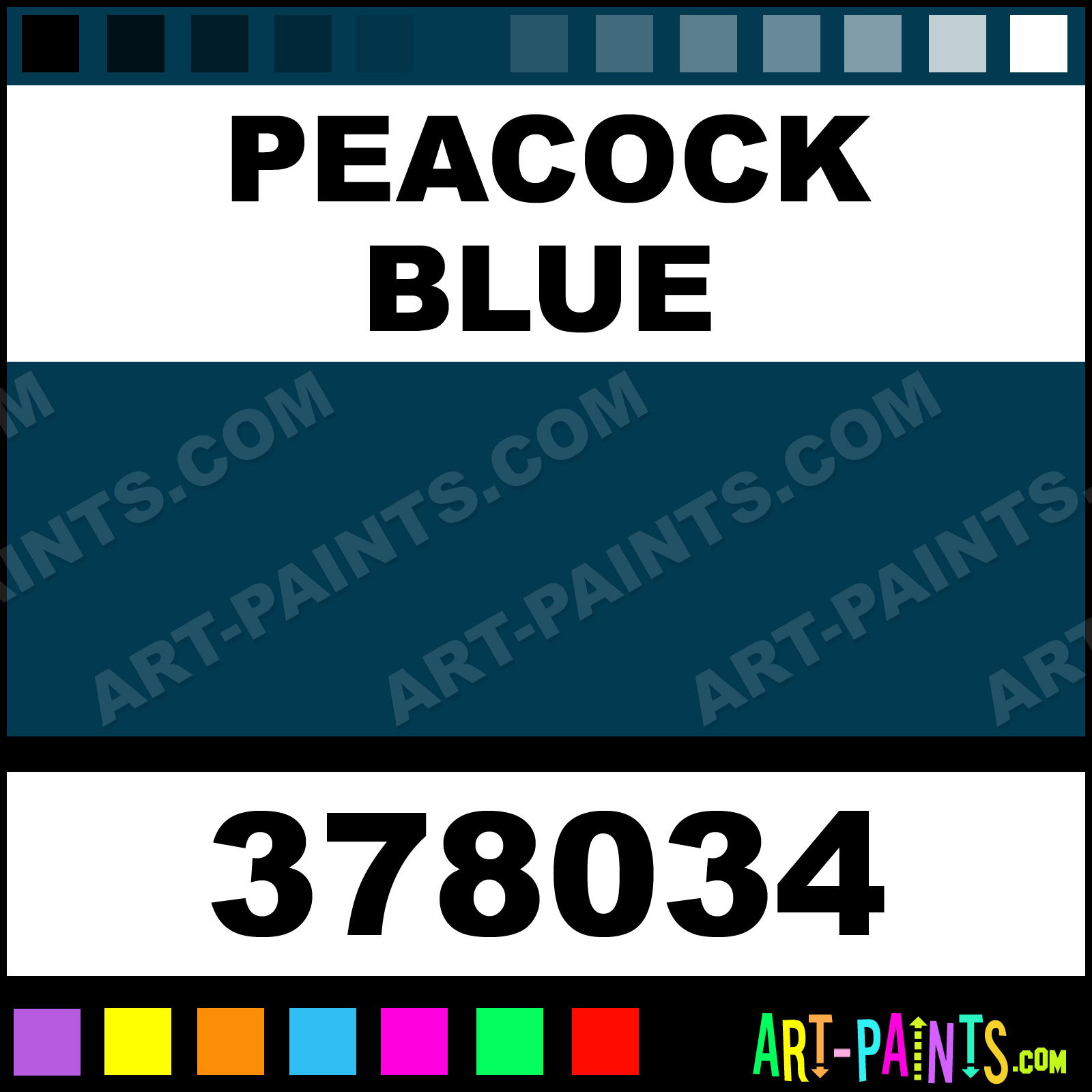 This beautiful Designer Gouache shade is called Peacock Blue, and comes from a company called Holbein. Their product number, along with the HTML color code, RGB, and CMYK codes are listed below. This Beautiful Shade of Peacock Blue and others can be found in the Holbein Designer Art Paint Gallery! Also be sure to browse through the other wonderful Professional Color Galleries to see more of Holbein Designer Gouache Brand Paints and other Paint Manufacturers. And as always, Paint Paint Paint! -Art-Paints.com