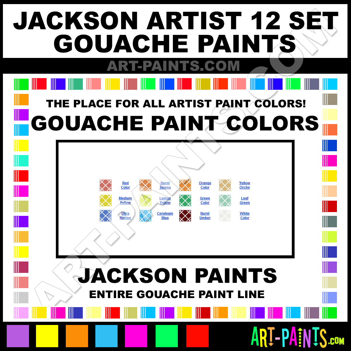 Jackson makes a beautiful Artist 12 Set Paint Brand. With a complete line of Gouache Color Paints, 12 colors in all, available in beautiful hues and colors, they will no doubt keep you painting and smiling at the same time. This brand is very unique and exquisite!
