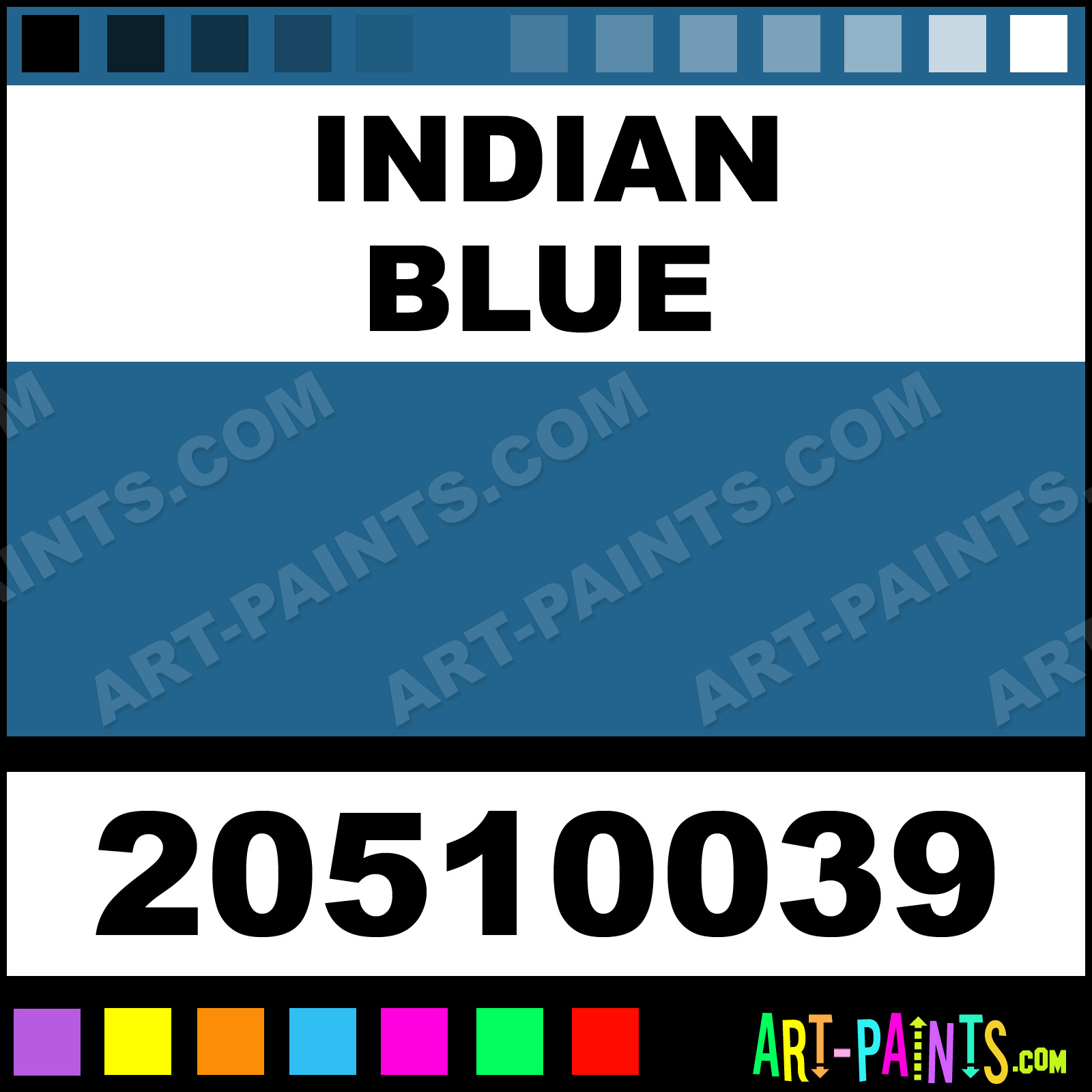 This beautiful Artists Gouache shade is called Indian Blue, and comes from a company called Linel. Their product number, along with the HTML color code, RGB, and CMYK codes are listed below. This Beautiful Shade of Indian Blue and others can be found in the Linel Artists Art Paint Gallery! Also be sure to browse through the other wonderful Professional Color Galleries to see more of Linel Artists Gouache Brand Paints and other Paint Manufacturers. And as always, Paint Paint Paint! -Art-Paints.com