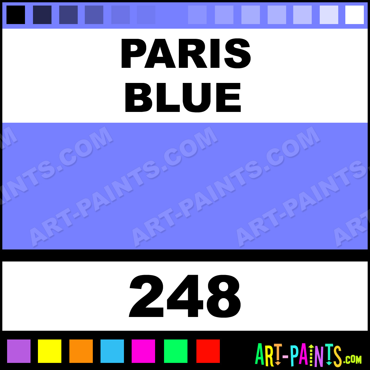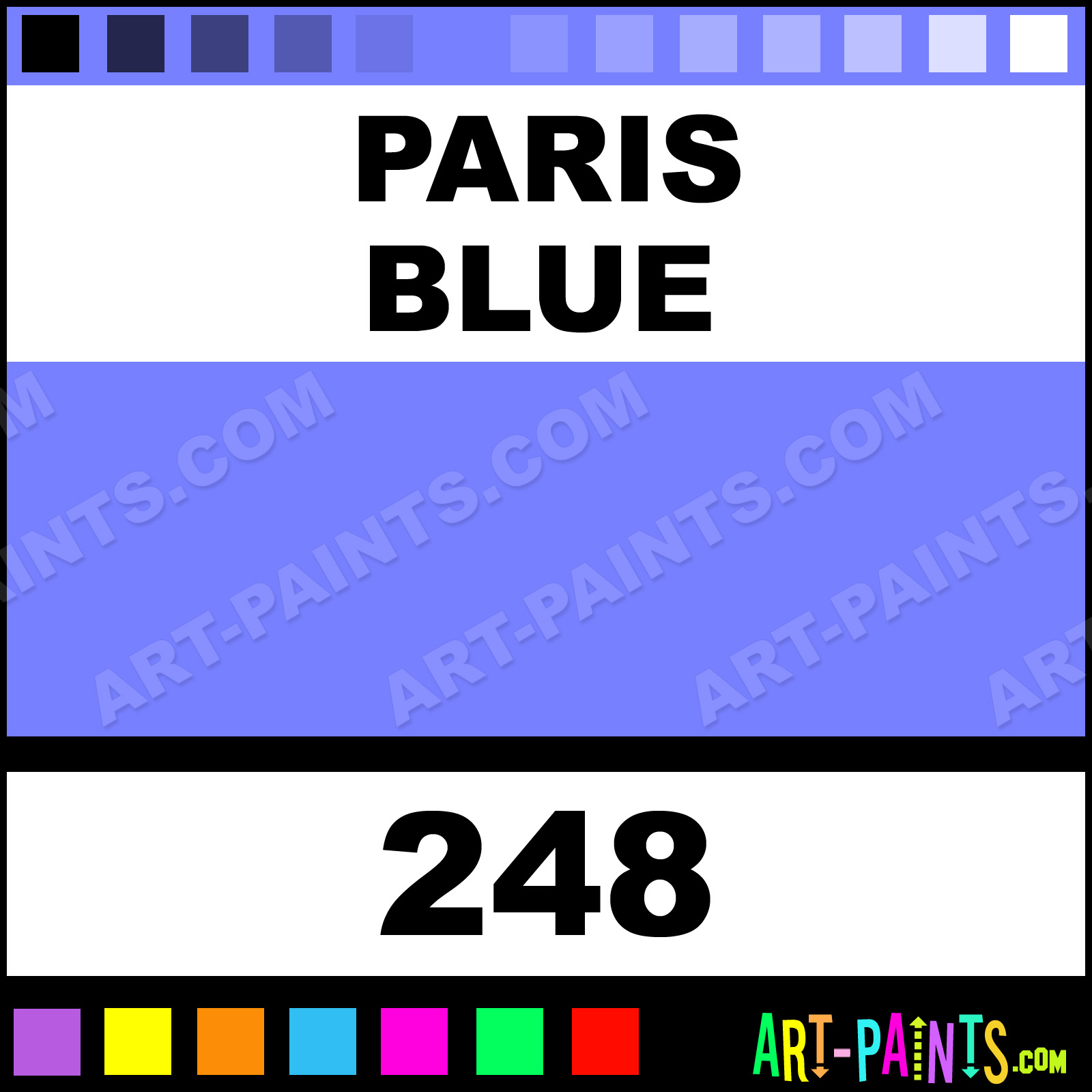 This beautiful Designers Gouache shade is called Paris Blue, and comes from a company called Maimeri. Their product number, along with the HTML color code, RGB, and CMYK codes are listed below. This Beautiful Shade of Paris Blue and others can be found in the Maimeri Designers Art Paint Gallery! Also be sure to browse through the other wonderful Professional Color Galleries to see more of Maimeri Designers Gouache Brand Paints and other Paint Manufacturers. And as always, Paint Paint Paint! -Art-Paints.com