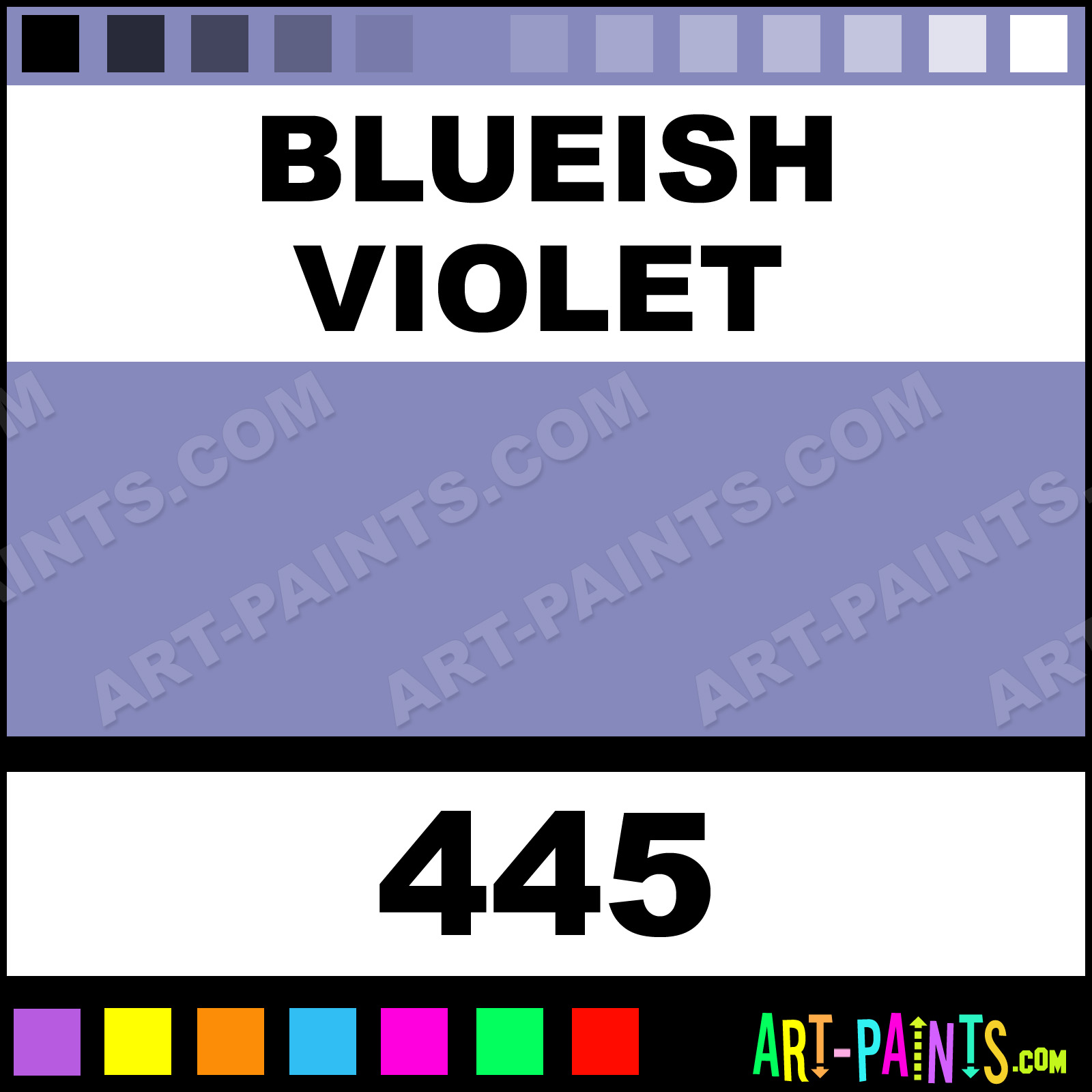 This beautiful Extra Fine Gouache shade is called Blueish Violet, and comes from a company called Maimeri. Their product number, along with the HTML color code, RGB, and CMYK codes are listed below. This Beautiful Shade of Blueish Violet and others can be found in the Maimeri Extra Fine Art Paint Gallery! Also be sure to browse through the other wonderful Professional Color Galleries to see more of Maimeri Extra Fine Gouache Brand Paints and other Paint Manufacturers. And as always, Paint Paint Paint! -Art-Paints.com
