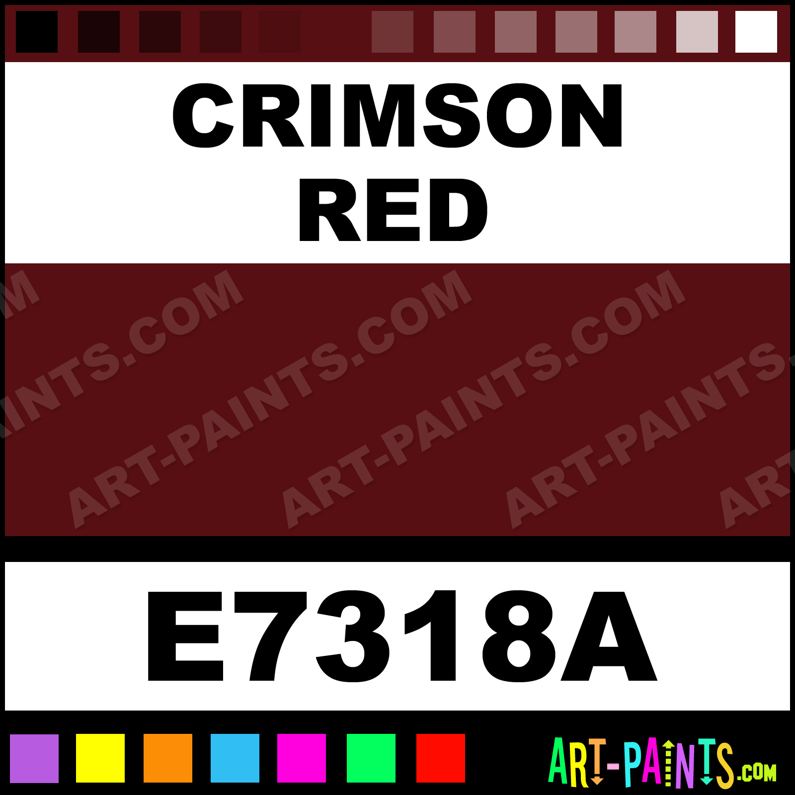 This beautiful Professional Gouache shade is called Crimson Red, and comes from a company called Maries. Their product number, along with the HTML color code, RGB, and CMYK codes are listed below. This Beautiful Shade of Crimson Red and others can be found in the Maries Professional Art Paint Gallery! Also be sure to browse through the other wonderful Professional Color Galleries to see more of Maries Professional Gouache Brand Paints and other Paint Manufacturers. And as always, Paint Paint Paint! -Art-Paints.com