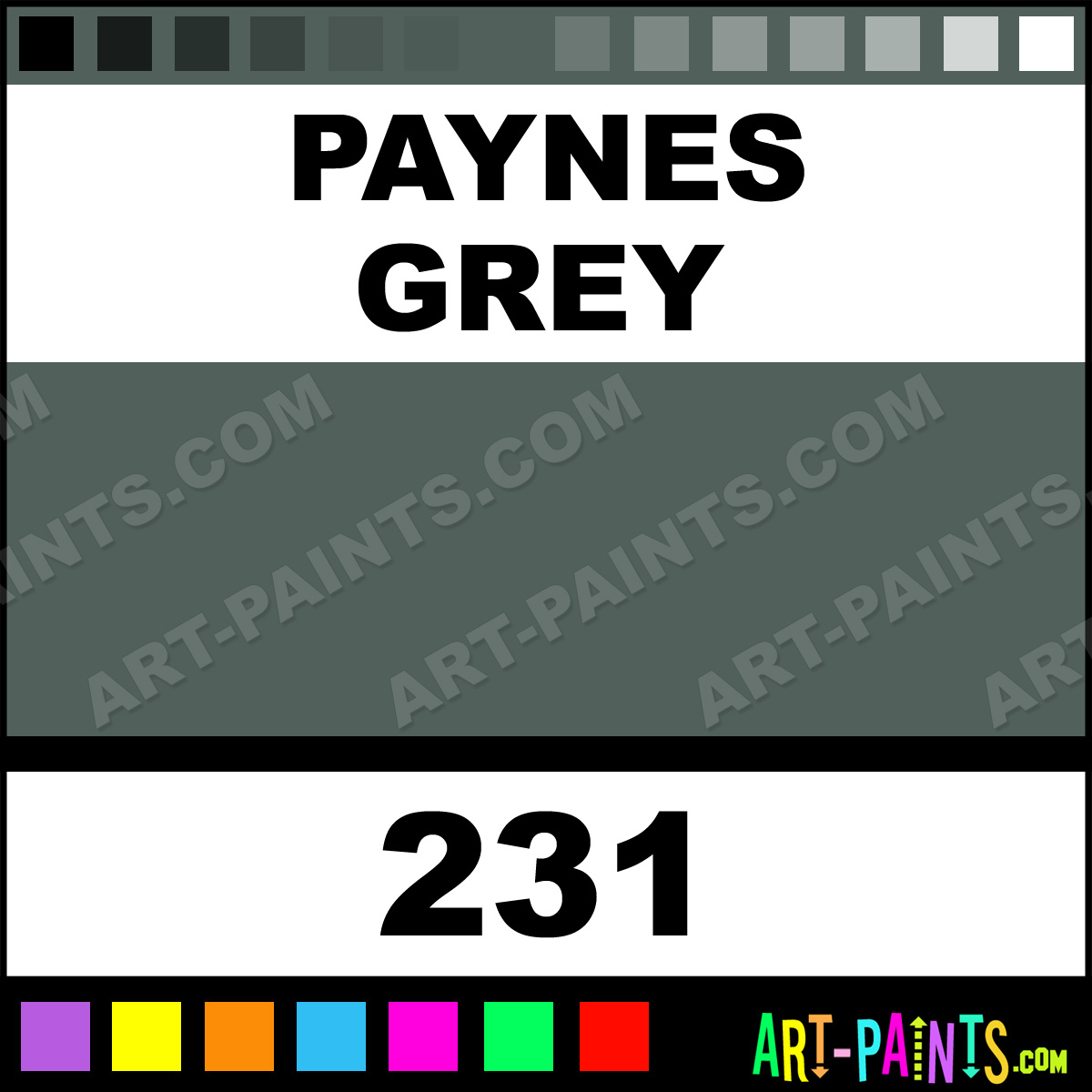This beautiful Extra Fine T7 Gouache shade is called Paynes Grey, and comes from a company called Pebeo. Their product number, along with the HTML color code, RGB, and CMYK codes are listed below. This Beautiful Shade of Paynes Grey and others can be found in the Pebeo Extra Fine T7 Art Paint Gallery! Also be sure to browse through the other wonderful Professional Color Galleries to see more of Pebeo Extra Fine T7 Gouache Brand Paints and other Paint Manufacturers. And as always, Paint Paint Paint! -Art-Paints.com