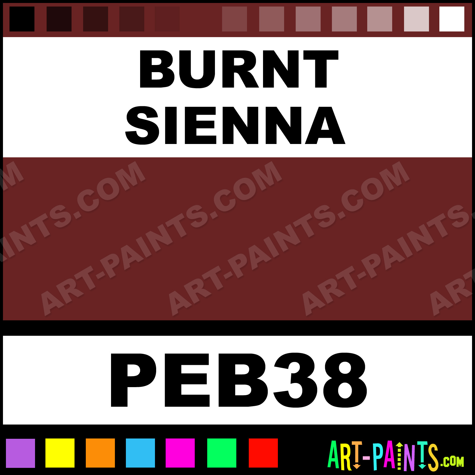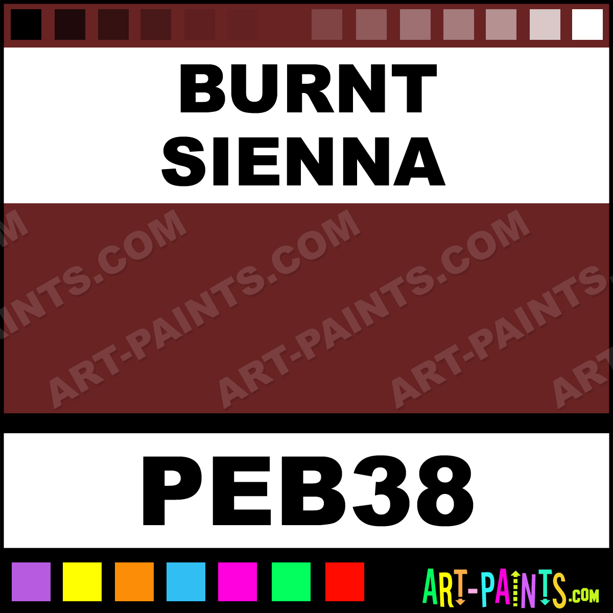This beautiful Studio Gouache shade is called Burnt Sienna, and comes from a company called Pebeo. Their product number, along with the HTML color code, RGB, and CMYK codes are listed below. This Beautiful Shade of Burnt Sienna and others can be found in the Pebeo Studio Art Paint Gallery! Also be sure to browse through the other wonderful Professional Color Galleries to see more of Pebeo Studio Gouache Brand Paints and other Paint Manufacturers. And as always, Paint Paint Paint! -Art-Paints.com