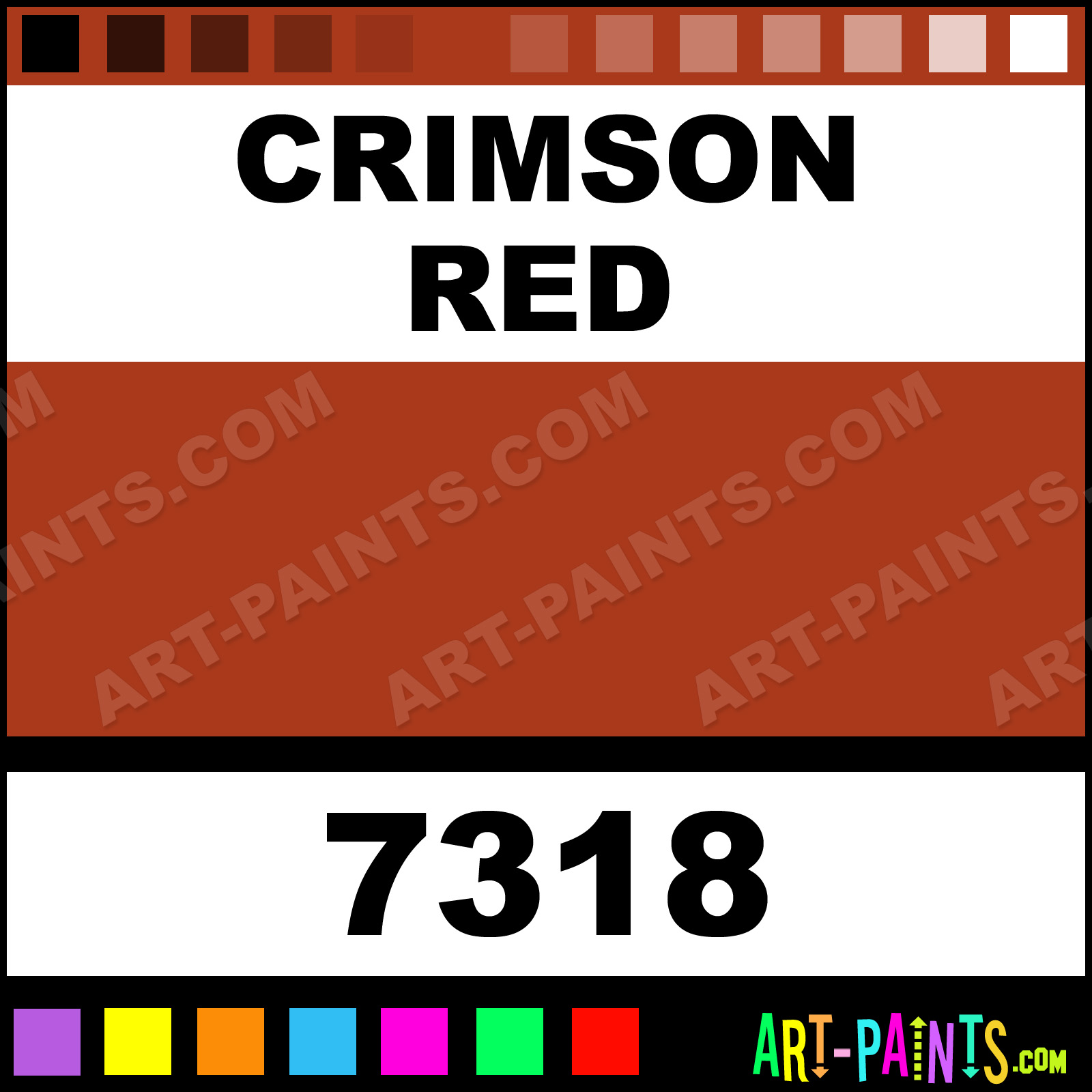 This beautiful Artist 18 Set Gouache shade is called Crimson Red, and comes from a company called Qingzhu. Their product number, along with the HTML color code, RGB, and CMYK codes are listed below. This Beautiful Shade of Crimson Red and others can be found in the Qingzhu Artist 18 Set Art Paint Gallery! Also be sure to browse through the other wonderful Professional Color Galleries to see more of Qingzhu Artist 18 Set Gouache Brand Paints and other Paint Manufacturers. And as always, Paint Paint Paint! -Art-Paints.com