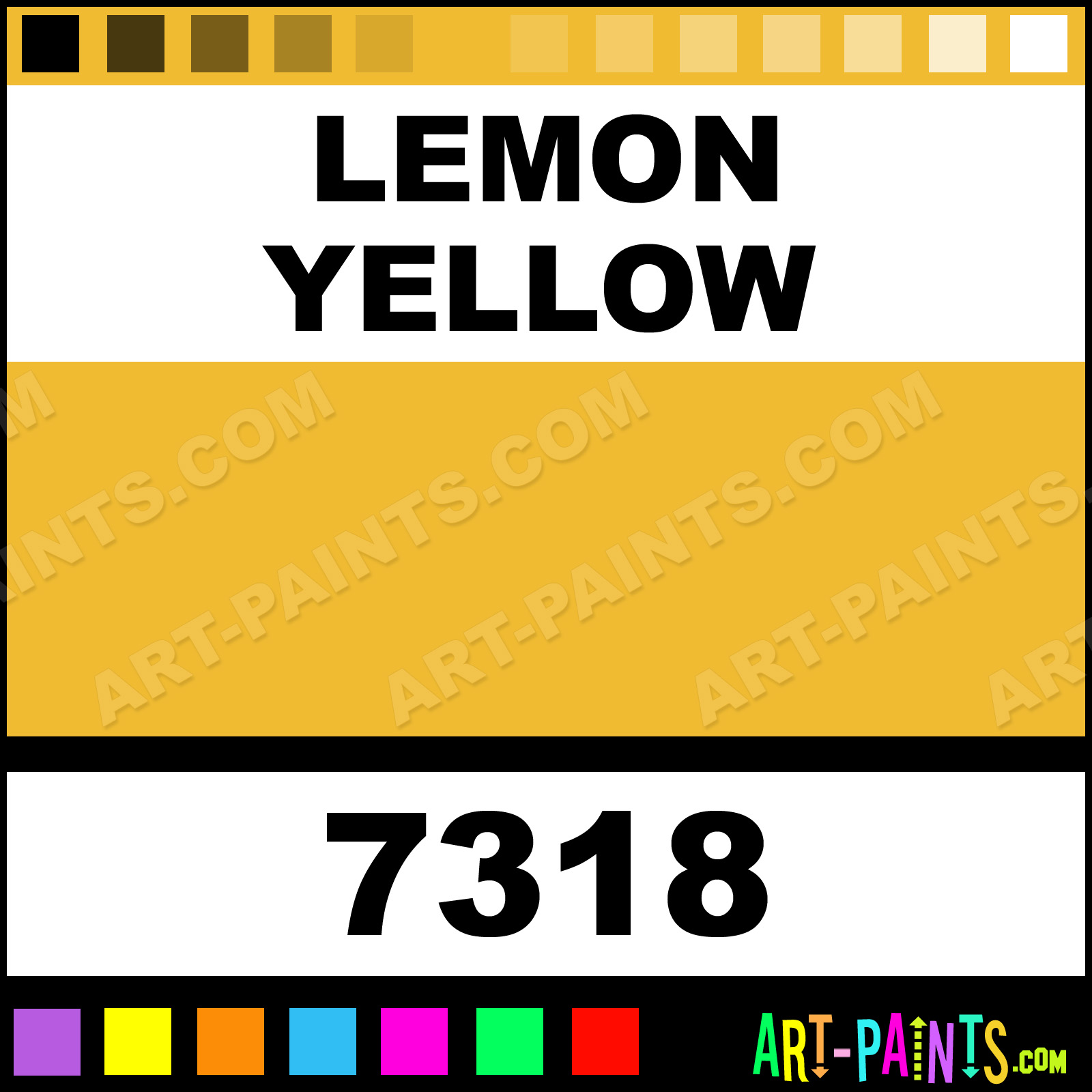 This beautiful Artist 18 Set Gouache shade is called Lemon Yellow, and comes from a company called Qingzhu. Their product number, along with the HTML color code, RGB, and CMYK codes are listed below. This Beautiful Shade of Lemon Yellow and others can be found in the Qingzhu Artist 18 Set Art Paint Gallery! Also be sure to browse through the other wonderful Professional Color Galleries to see more of Qingzhu Artist 18 Set Gouache Brand Paints and other Paint Manufacturers. And as always, Paint Paint Paint! -Art-Paints.com