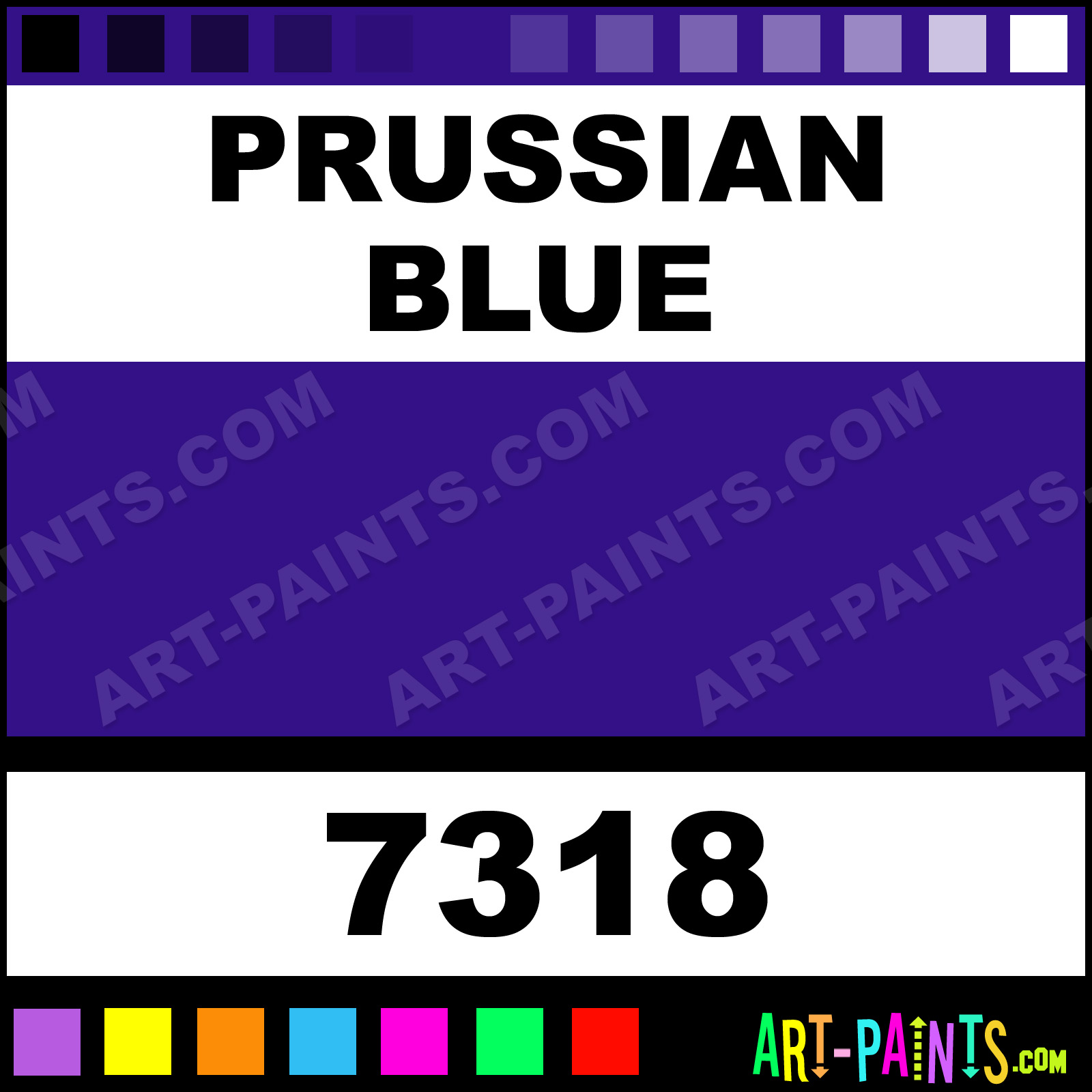 This beautiful Artist 18 Set Gouache shade is called Prussian Blue, and comes from a company called Qingzhu. Their product number, along with the HTML color code, RGB, and CMYK codes are listed below. This Beautiful Shade of Prussian Blue and others can be found in the Qingzhu Artist 18 Set Art Paint Gallery! Also be sure to browse through the other wonderful Professional Color Galleries to see more of Qingzhu Artist 18 Set Gouache Brand Paints and other Paint Manufacturers. And as always, Paint Paint Paint! -Art-Paints.com