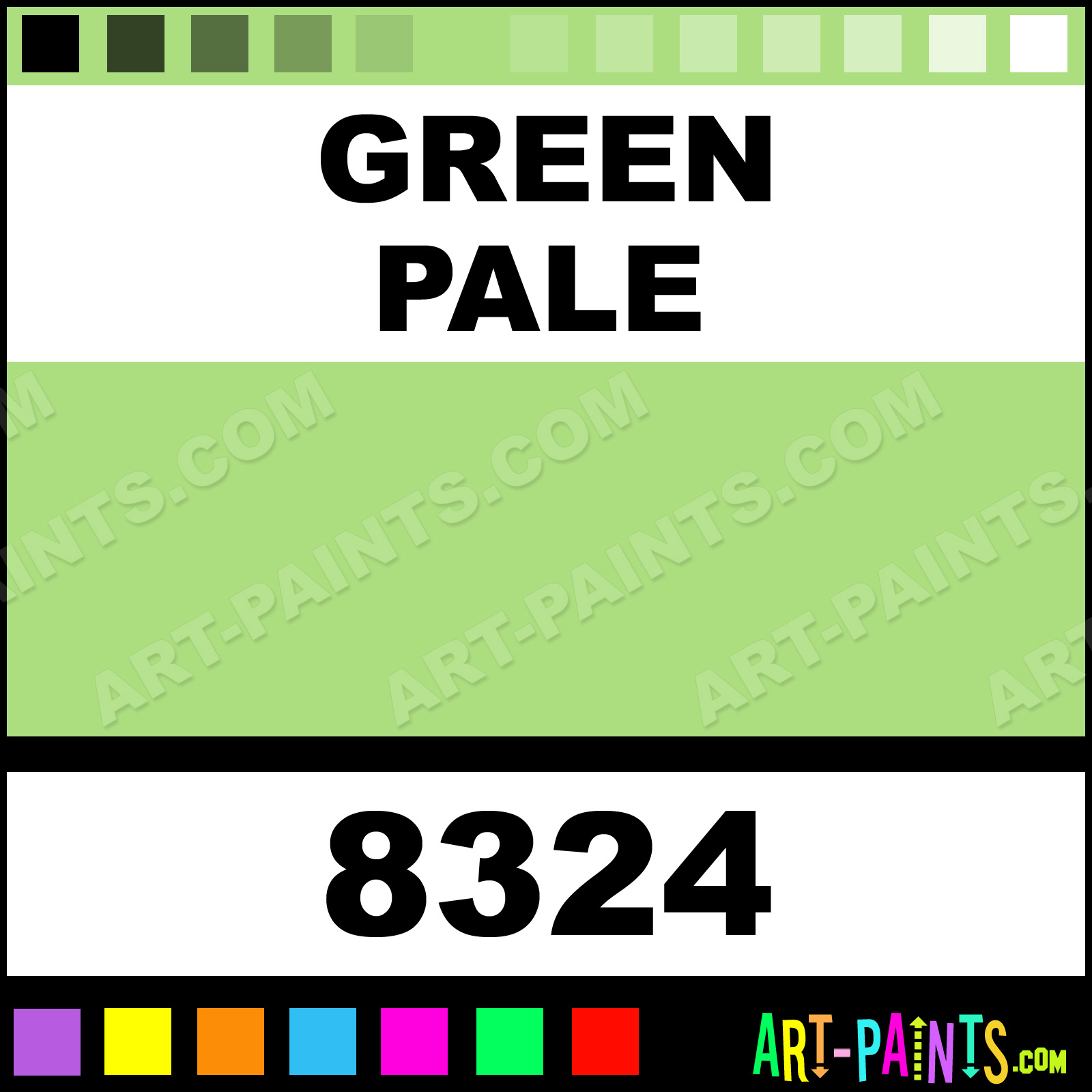 This beautiful Artist 24 Set Gouache shade is called Green Pale, and comes from a company called Qingzhu. Their product number, along with the HTML color code, RGB, and CMYK codes are listed below. This Beautiful Shade of Green Pale and others can be found in the Qingzhu Artist 24 Set Art Paint Gallery! Also be sure to browse through the other wonderful Professional Color Galleries to see more of Qingzhu Artist 24 Set Gouache Brand Paints and other Paint Manufacturers. And as always, Paint Paint Paint! -Art-Paints.com