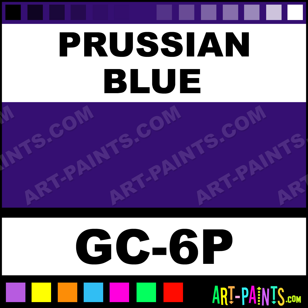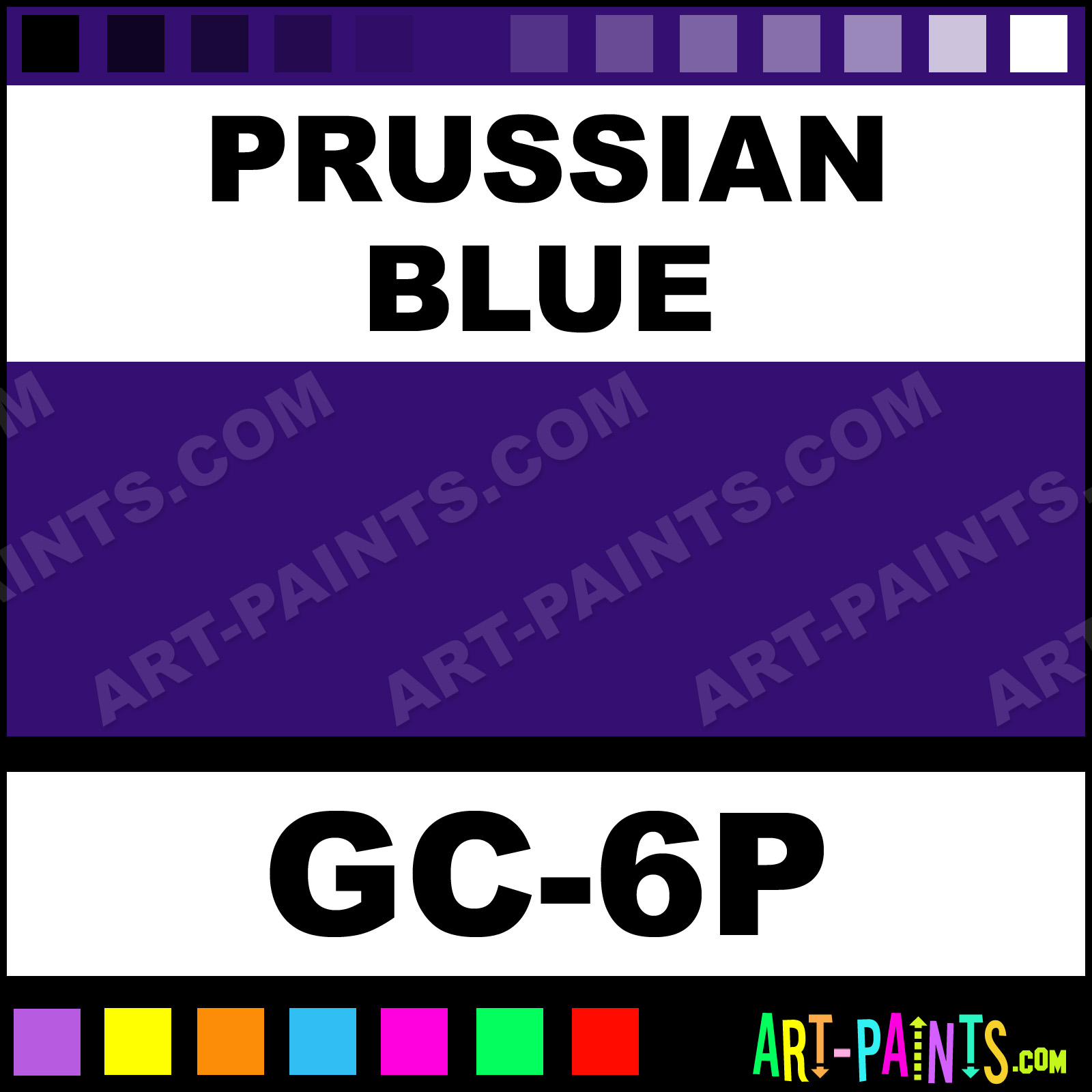 This beautiful Artist 6 Set Gouache shade is called Prussian Blue, and comes from a company called Qingzhu. Their product number, along with the HTML color code, RGB, and CMYK codes are listed below. This Beautiful Shade of Prussian Blue and others can be found in the Qingzhu Artist 6 Set Art Paint Gallery! Also be sure to browse through the other wonderful Professional Color Galleries to see more of Qingzhu Artist 6 Set Gouache Brand Paints and other Paint Manufacturers. And as always, Paint Paint Paint! -Art-Paints.com