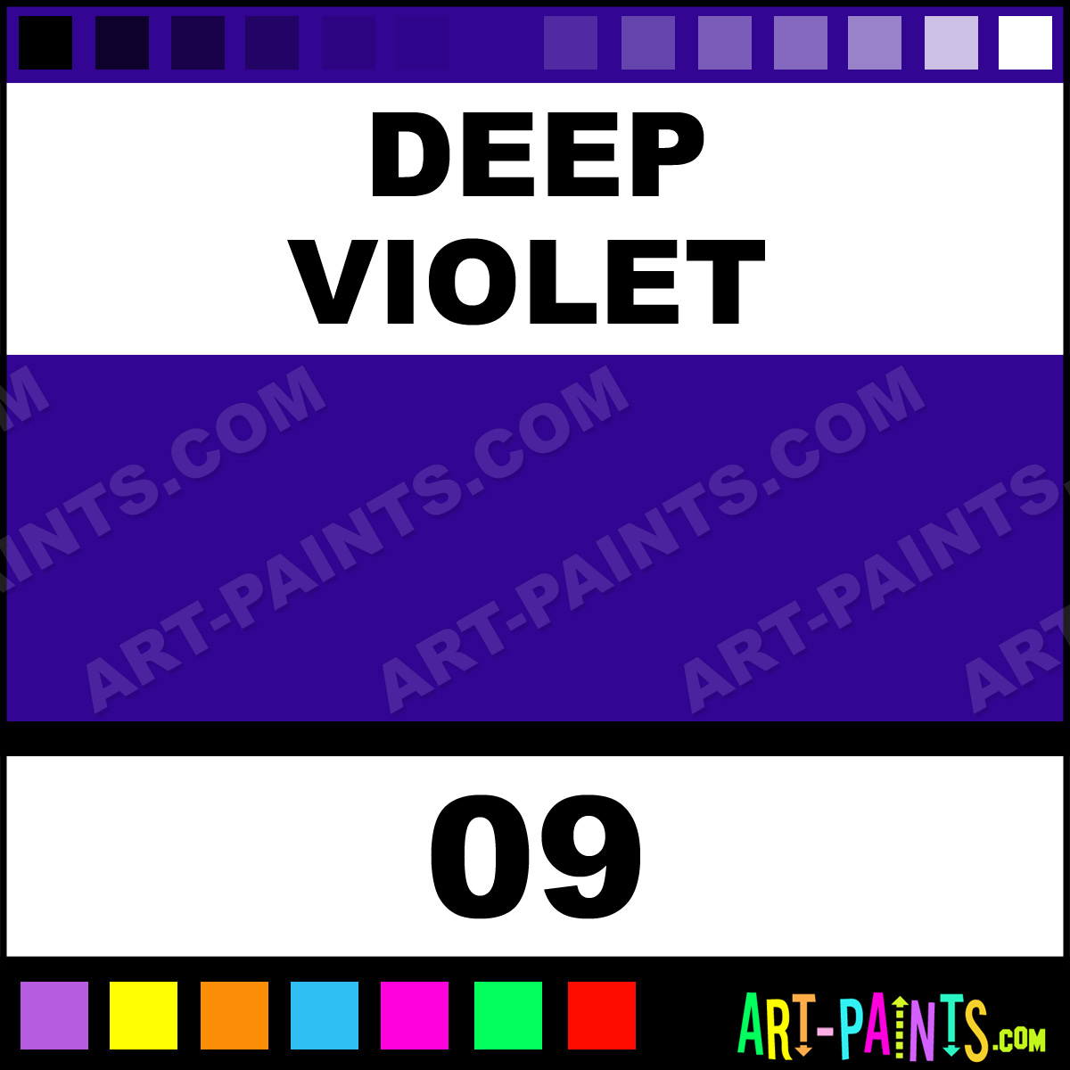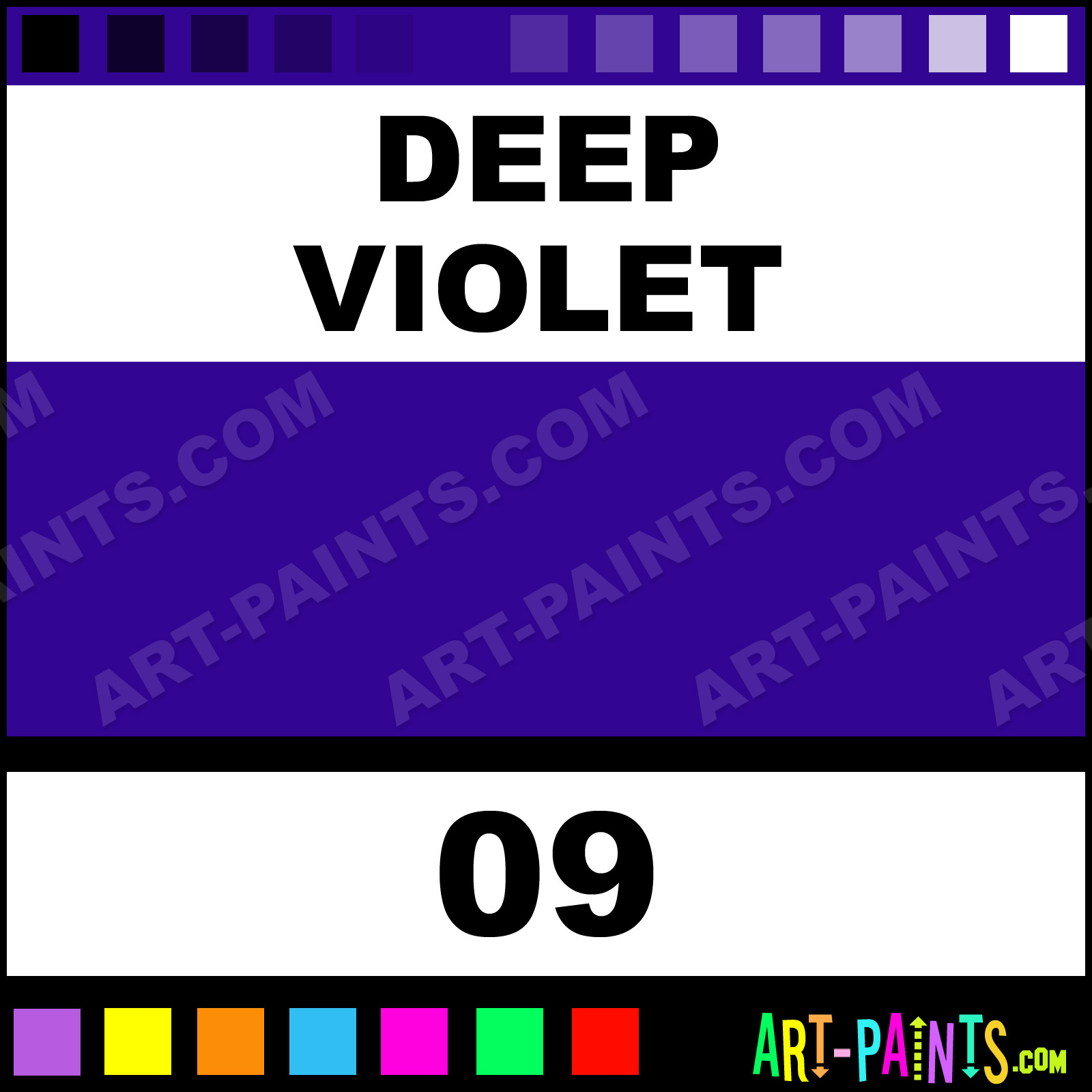 This beautiful French School Gouache shade is called Deep Violet, and comes from a company called Savoir Faire. Their product number, along with the HTML color code, RGB, and CMYK codes are listed below. This Beautiful Shade of Deep Violet and others can be found in the Savoir Faire French School Art Paint Gallery! Also be sure to browse through the other wonderful Professional Color Galleries to see more of Savoir Faire French School Gouache Brand Paints and other Paint Manufacturers. And as always, Paint Paint Paint! -Art-Paints.com