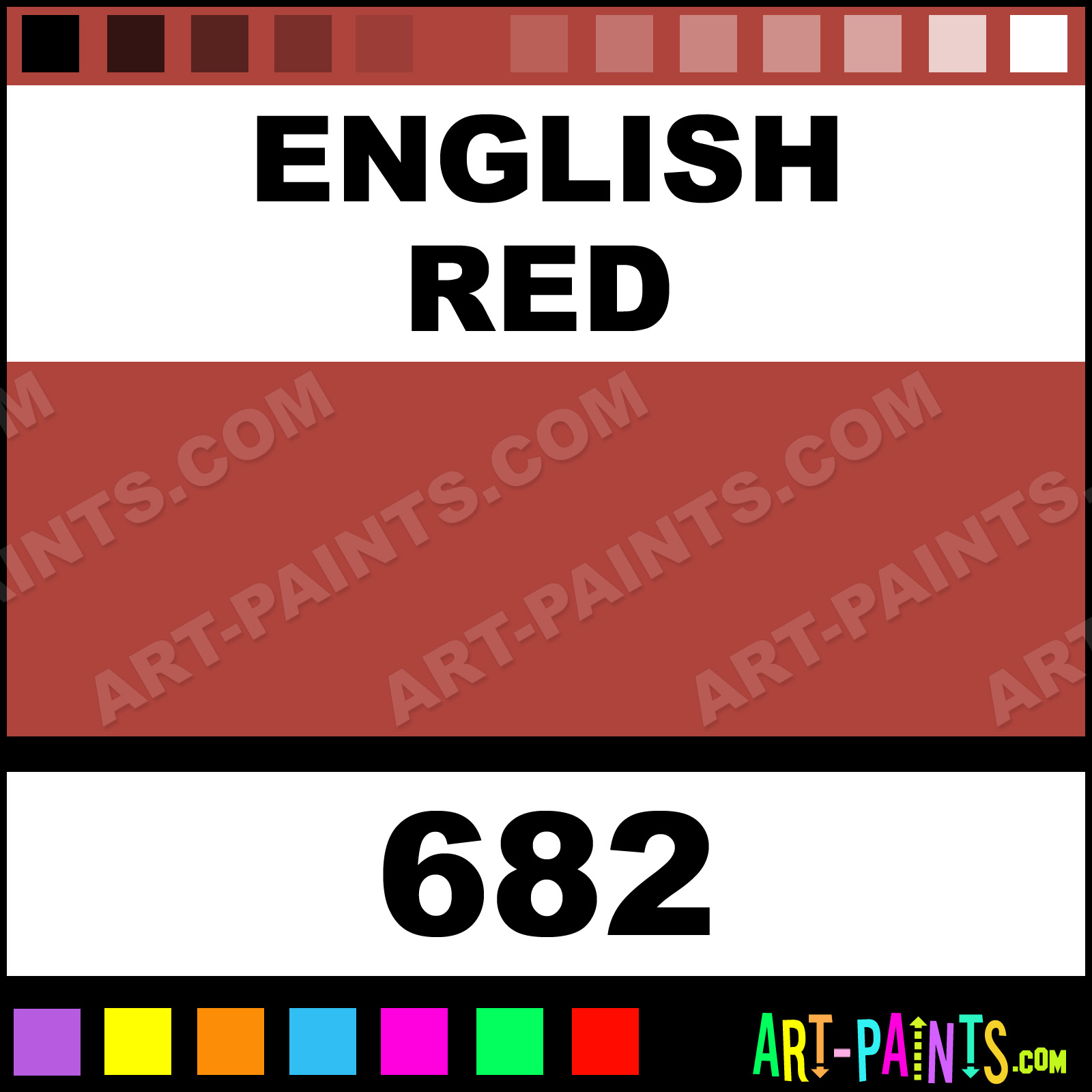 This beautiful Designers Series 12 Gouache shade is called English Red, and comes from a company called Schmincke. Their product number, along with the HTML color code, RGB, and CMYK codes are listed below. This Beautiful Shade of English Red and others can be found in the Schmincke Designers Series 12 Art Paint Gallery! Also be sure to browse through the other wonderful Professional Color Galleries to see more of Schmincke Designers Series 12 Gouache Brand Paints and other Paint Manufacturers. And as always, Paint Paint Paint! -Art-Paints.com