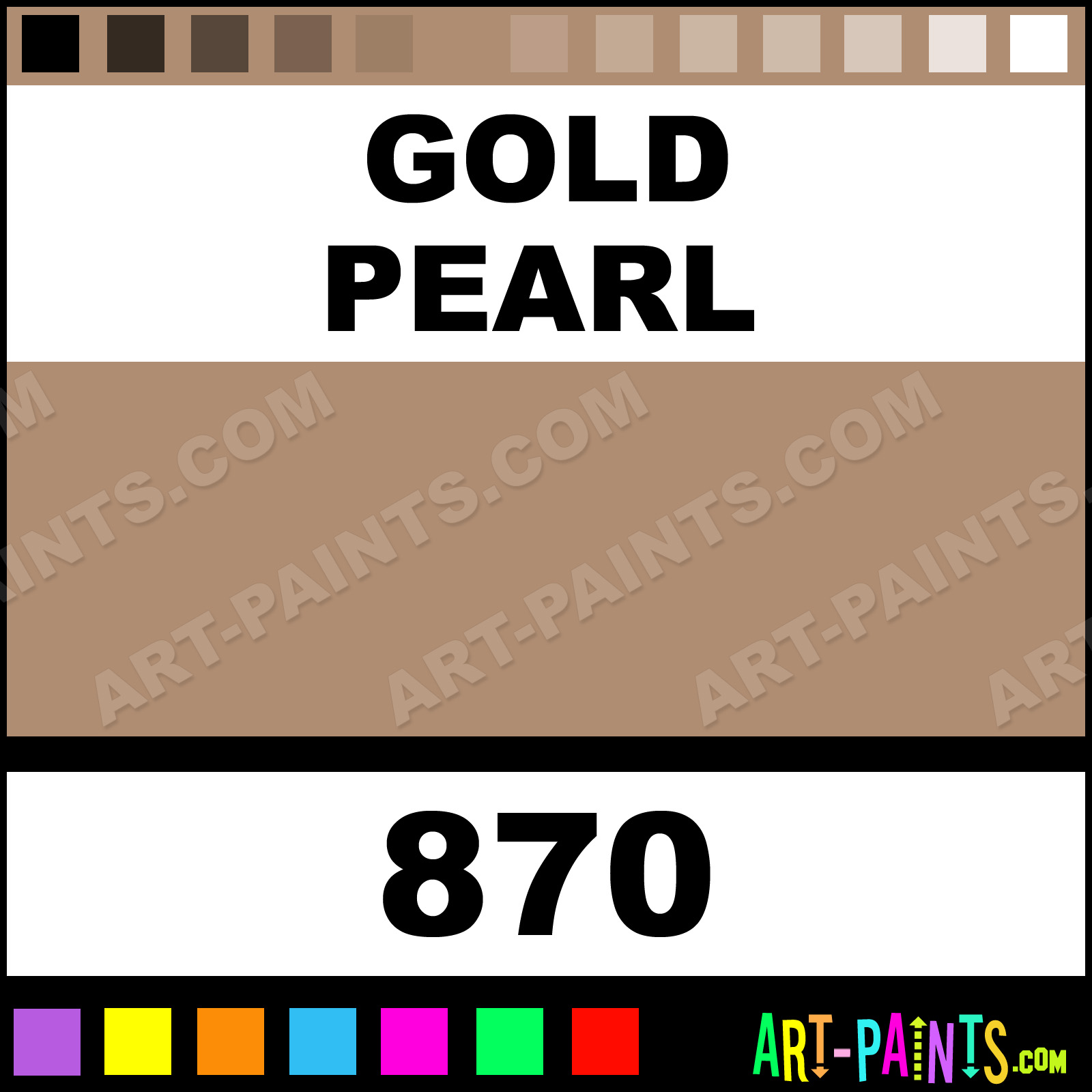 This beautiful Finest Artist Gouache shade is called Gold Pearl, and comes from a company called Schmincke. Their product number, along with the HTML color code, RGB, and CMYK codes are listed below. This Beautiful Shade of Gold Pearl and others can be found in the Schmincke Finest Artist Art Paint Gallery! Also be sure to browse through the other wonderful Professional Color Galleries to see more of Schmincke Finest Artist Gouache Brand Paints and other Paint Manufacturers. And as always, Paint Paint Paint! -Art-Paints.com