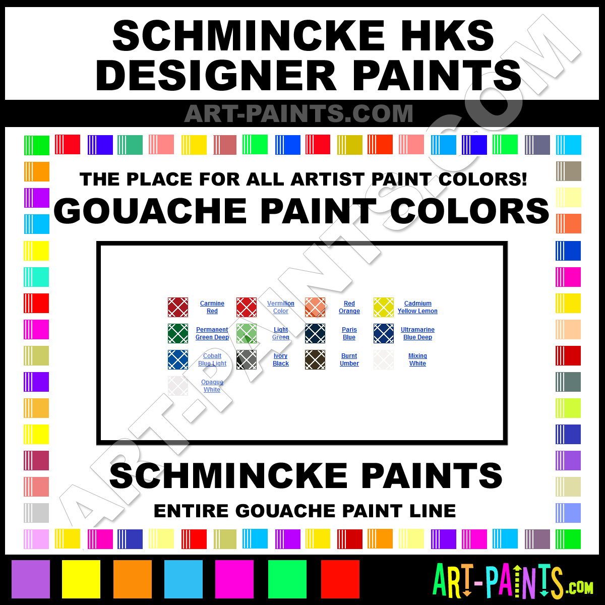 Schmincke knows Gouache paints! They make a wonderful brand of paint called Schmincke HKS Designer Gouache Colors that suits all types of artists. They strive to perfect the process of color and are one of the most popular Gouache Paint Brand companies in the world. Enjoy their entire paint brand collection from the list below. Schmincke makes wonderful Artists Paints that everyone is sure to enjoy! Choose an Gouache Paint Color below to view that Hue and all their great related color paints. Paint on!     -Art-Paints.com