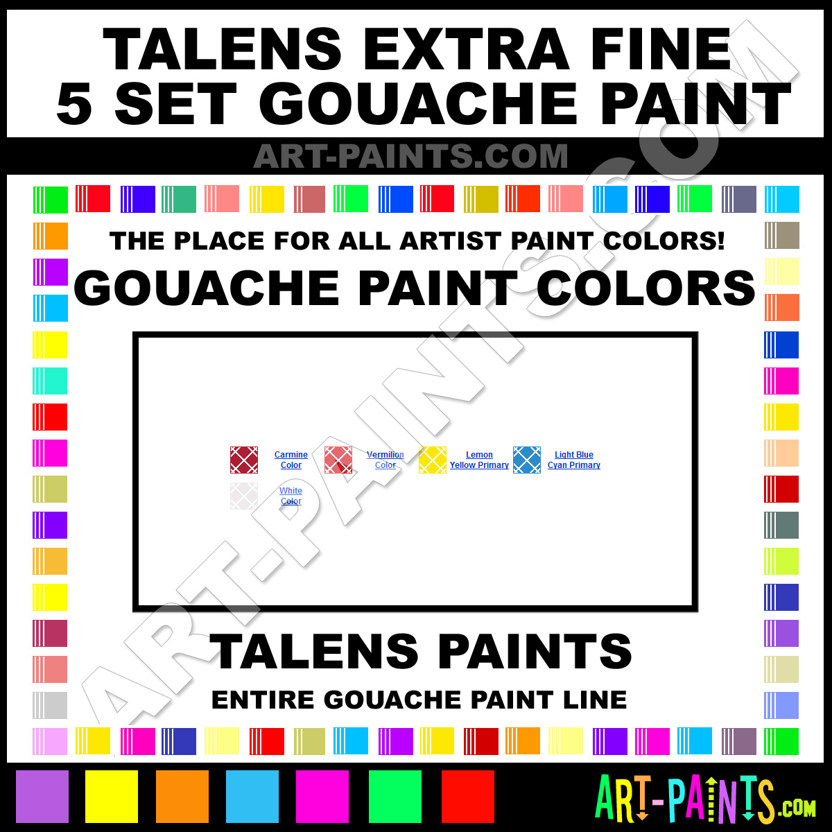 Talens knows Gouache paints! They make a wonderful brand of paint called Talens Extra Fine 5 Set Gouache Colors that suits all types of artists. They strive to perfect the process of color and are one of the most popular Gouache Paint Brand companies in the world. Enjoy their entire paint brand collection from the list below. Talens makes wonderful Artists Paints that everyone is sure to enjoy! Choose an Gouache Paint Color below to view that Hue and all their great related color paints. Paint on!     -Art-Paints.com