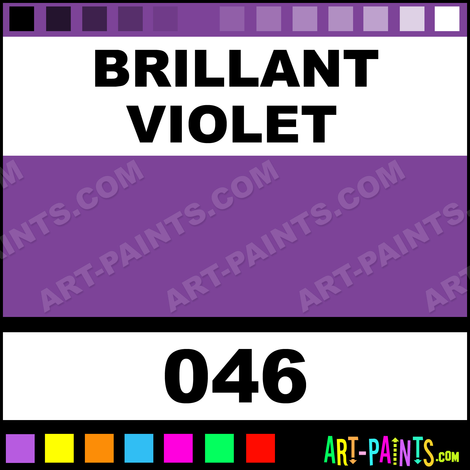 This beautiful Designers Gouache shade is called Brillant Violet, and comes from a company called Winsor and Newton. Their product number, along with the HTML color code, RGB, and CMYK codes are listed below. This Beautiful Shade of Brillant Violet and others can be found in the Winsor and Newton Designers Art Paint Gallery! Also be sure to browse through the other wonderful Professional Color Galleries to see more of Winsor and Newton Designers Gouache Brand Paints and other Paint Manufacturers. And as always, Paint Paint Paint! -Art-Paints.com