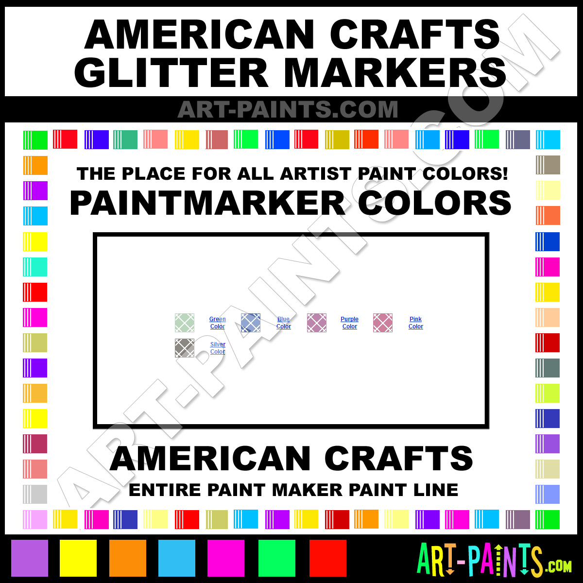 American Crafts knows Paintmarkers and Paintmarker Paints! They make a wonderful brand of paint called American Crafts Glitter Markers Paint Marker Colors and Marking Pens that suits all types of artists. They strive to perfect the process of color and are one of the most popular Paintmarker Brand companies in the world. Enjoy their entire paint brand collection from the list below. American Crafts makes wonderful Artists Paints that everyone is sure to enjoy! Choose an Paint Marker Paint Color below to view that Hue and all their great related color paints. Paint on!     -Art-Paints.com