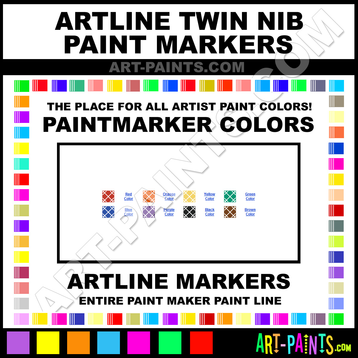 Artline knows Paintmarkers and Paintmarker Paints! They make a wonderful brand of paint called Artline Twin Nib Paint Marker Colors and Marking Pens that suits all types of artists. They strive to perfect the process of color and are one of the most popular Paintmarker Brand companies in the world. Enjoy their entire paint brand collection from the list below. Artline makes wonderful Artists Paints that everyone is sure to enjoy! Choose an Paint Marker Paint Color below to view that Hue and all their great related color paints. Paint on!     -Art-Paints.com
