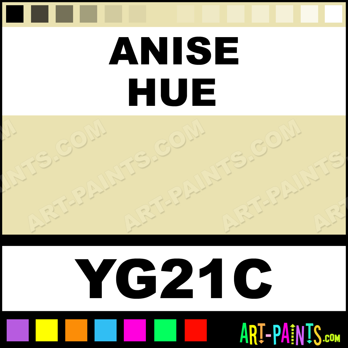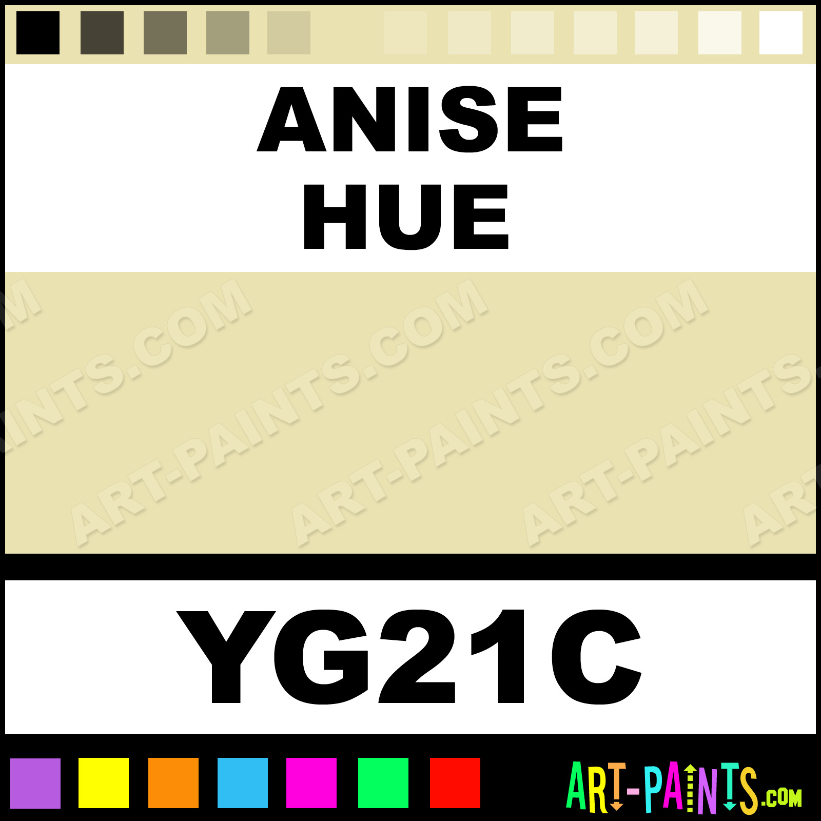 This beautiful Original Markers Paint Marker shade is called Anise, and comes from a company called Copic. Their product number, along with the HTML color code, RGB, and CMYK codes are listed below. This Beautiful Shade of Anise and other Paintmarkers can be found in the Copic Original Markers Art Paint Marking Pen Gallery! Also be sure to browse through the other wonderful Paintmarker Professional Color Galleries to see more of Copic Original Markers Paint Marker Brand Paints and other Marking Pen Paint Manufacturers. And as always, Paint Paint Paint!  -Art-Paints.com