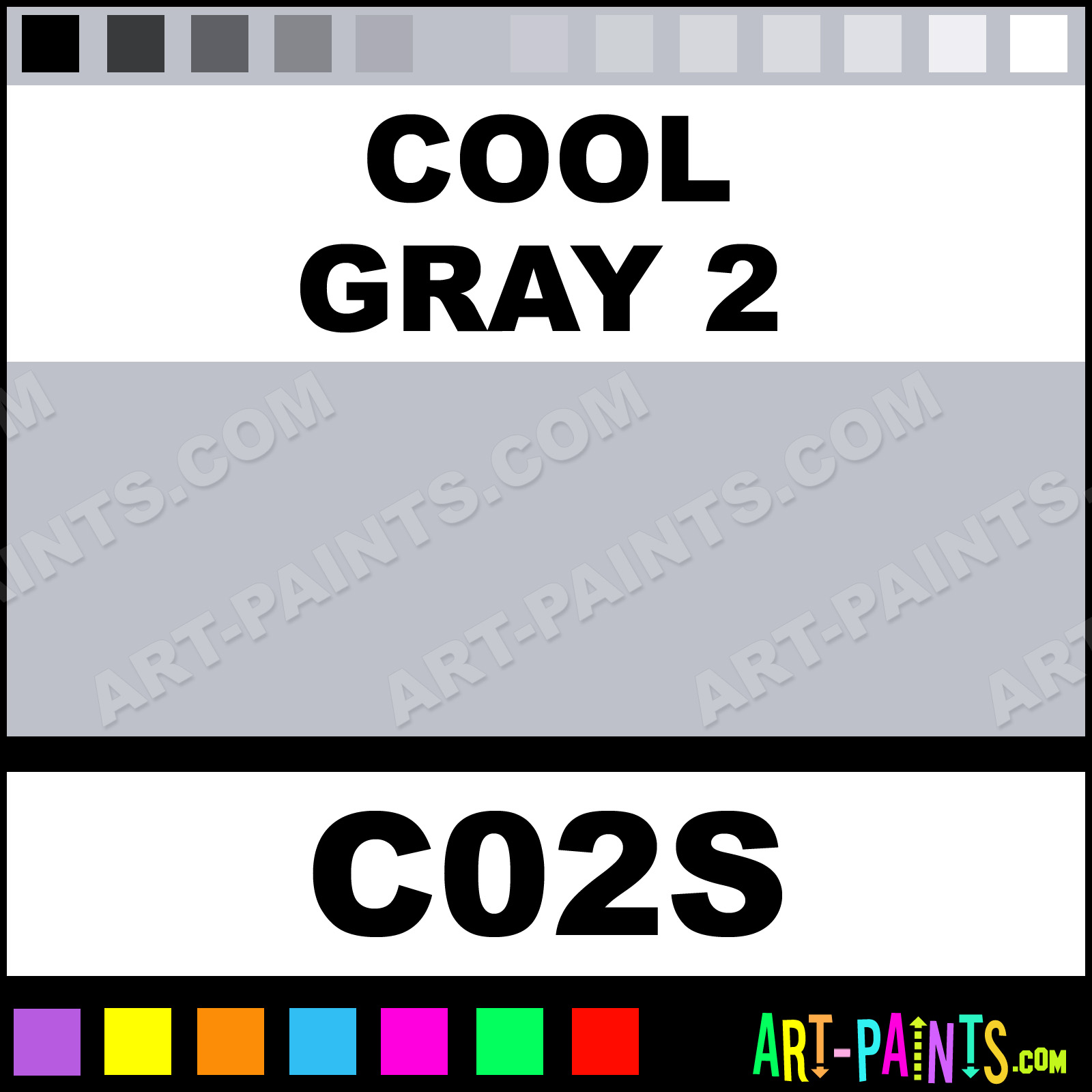 This beautiful Sketch Markers Paint Marker shade is called Cool Gray 2, and comes from a company called Copic. Their product number, along with the HTML color code, RGB, and CMYK codes are listed below. This Beautiful Shade of Cool Gray 2 and other Paintmarkers can be found in the Copic Sketch Markers Art Paint Marking Pen Gallery! Also be sure to browse through the other wonderful Paintmarker Professional Color Galleries to see more of Copic Sketch Markers Paint Marker Brand Paints and other Marking Pen Paint Manufacturers. And as always, Paint Paint Paint!  -Art-Paints.com