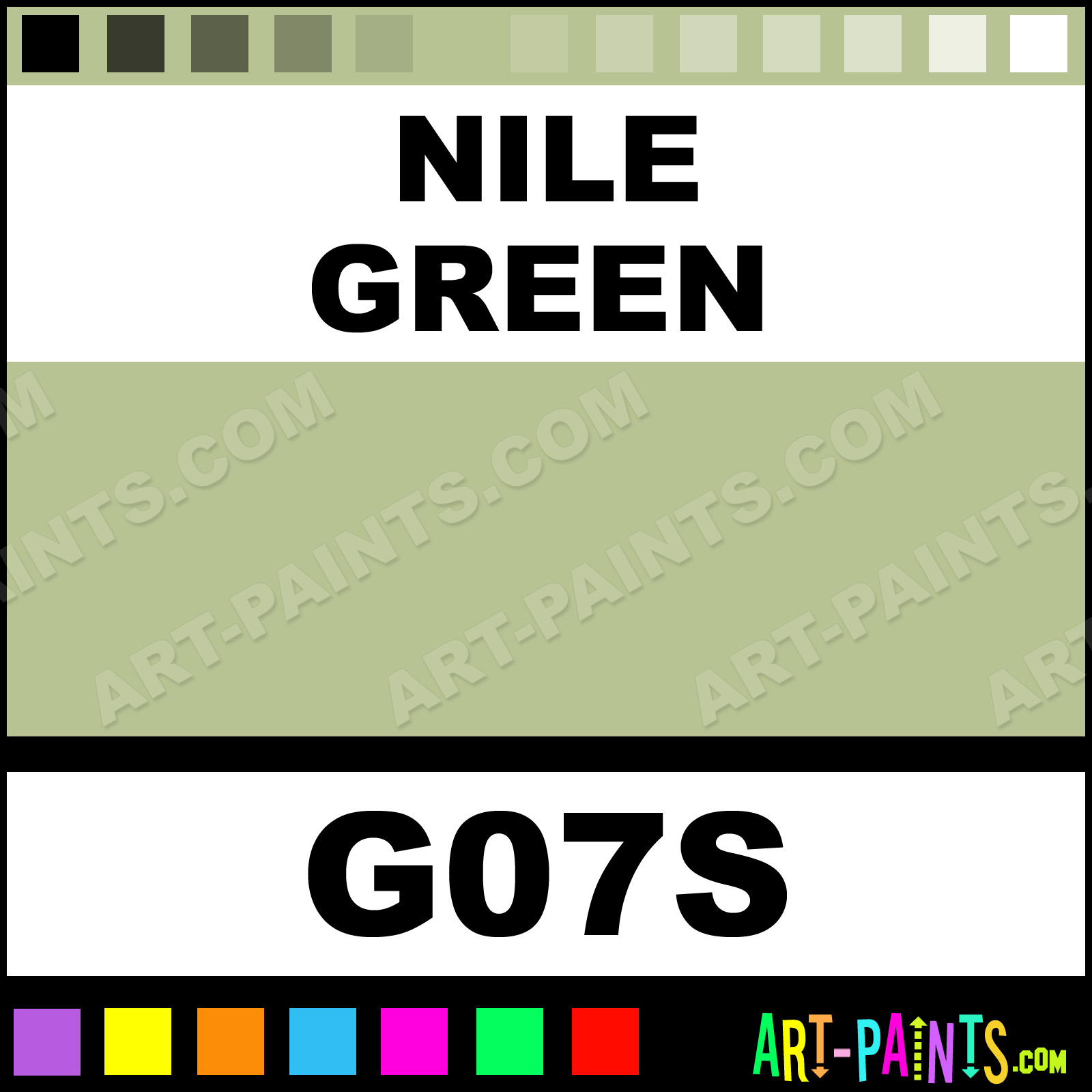 This beautiful Sketch Markers Paint Marker shade is called Nile Green, and comes from a company called Copic. Their product number, along with the HTML color code, RGB, and CMYK codes are listed below. This Beautiful Shade of Nile Green and other Paintmarkers can be found in the Copic Sketch Markers Art Paint Marking Pen Gallery! Also be sure to browse through the other wonderful Paintmarker Professional Color Galleries to see more of Copic Sketch Markers Paint Marker Brand Paints and other Marking Pen Paint Manufacturers. And as always, Paint Paint Paint!  -Art-Paints.com