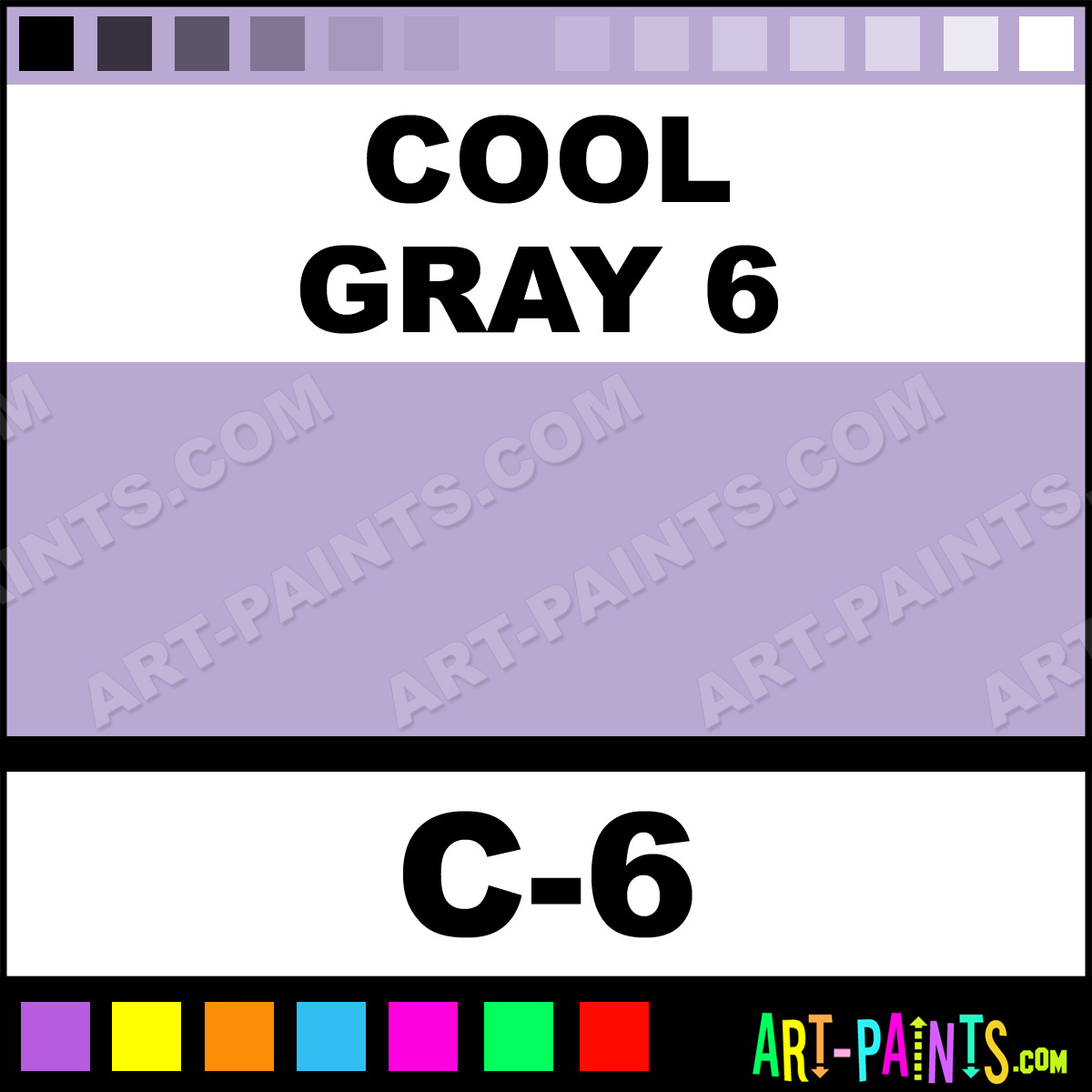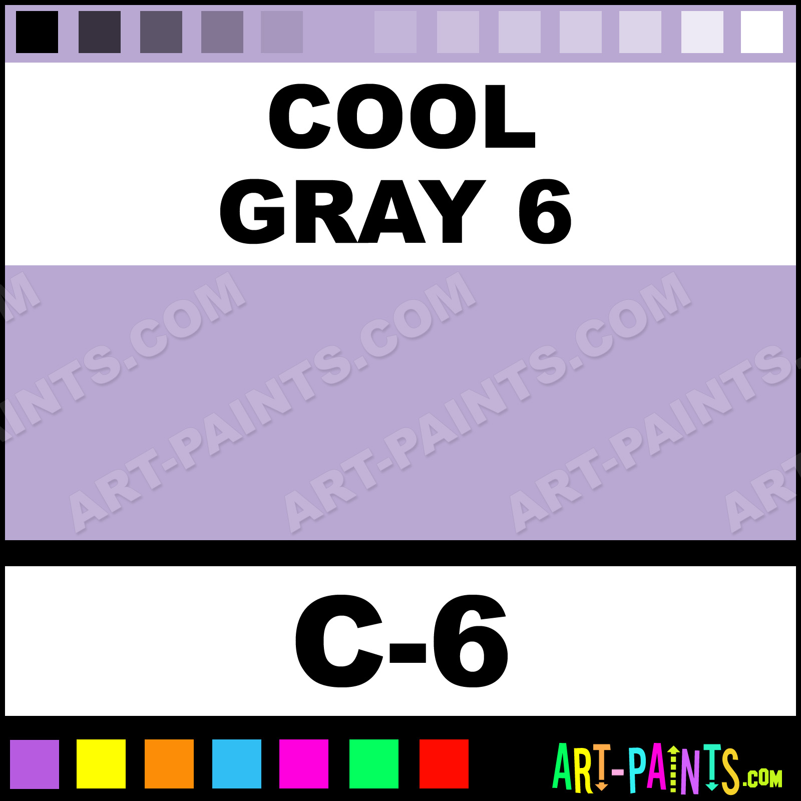 This beautiful Sketch Paint Marker shade is called Cool Gray 6, and comes from a company called Copic. Their product number, along with the HTML color code, RGB, and CMYK codes are listed below. This Beautiful Shade of Cool Gray 6 and other Paintmarkers can be found in the Copic Sketch Art Paint Marking Pen Gallery! Also be sure to browse through the other wonderful Paintmarker Professional Color Galleries to see more of Copic Sketch Paint Marker Brand Paints and other Marking Pen Paint Manufacturers. And as always, Paint Paint Paint!  -Art-Paints.com