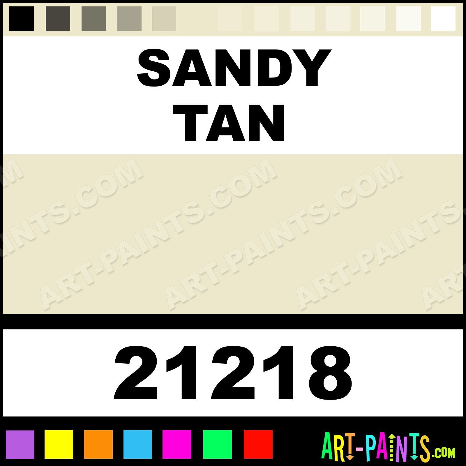 This beautiful Classic Original Paint Marker shade is called Sandy Tan, and comes from a company called Crayola. Their product number, along with the HTML color code, RGB, and CMYK codes are listed below. This Beautiful Shade of Sandy Tan and other Paintmarkers can be found in the Crayola Classic Original Art Paint Marking Pen Gallery! Also be sure to browse through the other wonderful Paintmarker Professional Color Galleries to see more of Crayola Classic Original Paint Marker Brand Paints and other Marking Pen Paint Manufacturers. And as always, Paint Paint Paint!  -Art-Paints.com