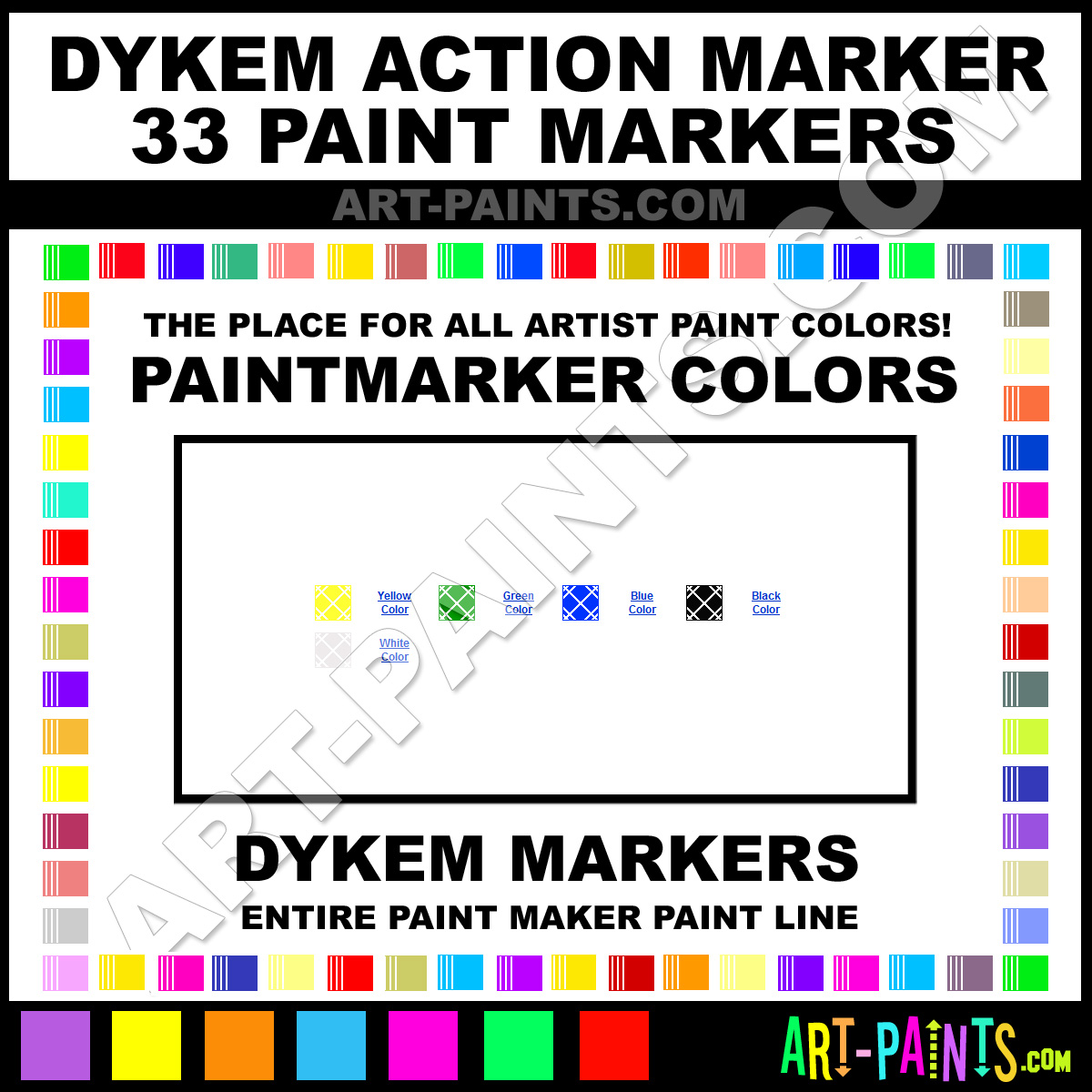 Dykem makes a beautiful Action Marker 33 Paint Brand. With a complete line of Marking Pen Paint Marker Colors & Paints, 5 colors in all, available in beautiful hues and colors, they will no doubt keep you painting and smiling at the same time. This brand is very unique and exquisite!