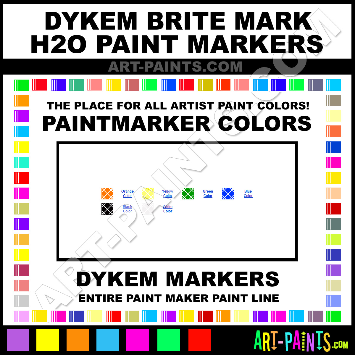 Dykem makes a beautiful Brite Mark H2O Paint Brand. With a complete line of Marking Pen Paint Marker Colors & Paints, 6 colors in all, available in beautiful hues and colors, they will no doubt keep you painting and smiling at the same time. This brand is very unique and exquisite!