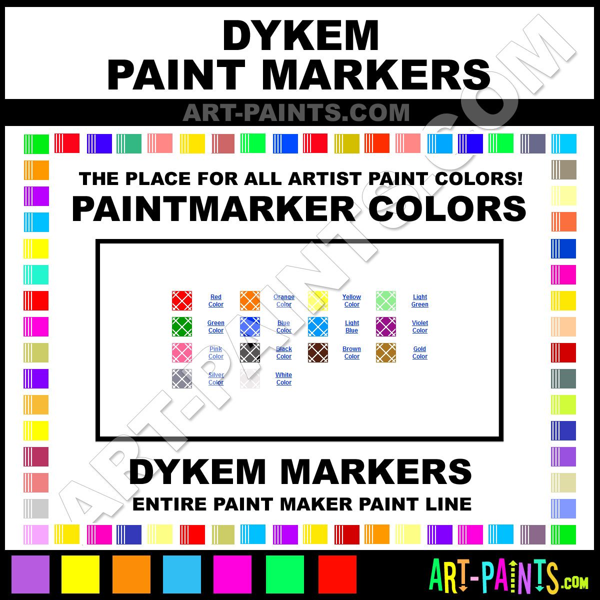 Dykem knows Paintmarker Paints and Marking Pens! They make wonderful brands of paint for all types of artists. They strive to perfect the process of color and are one of the most popular Paint Marker Brand companies in the world. Enjoy their entire brand collection from the list below. Dykem makes a couple different types of Paintmarker Paint Brands and Marking Pens including its 916 H2O Markers, Action Marker 33, Brite Mark Markers, Brite Mark 40 Markers, Brite Mark Fine Markers, Brite Mark H2O Markers, Brite Mark Medium Markers, High Temperature Action Markers, Rinz Off Markers, Sudz Off Heavy Duty Markers, Sudz Off Medium Markers, Tuff Guy Markers and Dalo Paint Markers! Choose an Paint Marker Paint type below to view that brand and all the related Color Paints and Hues in it. Paint on!   -Art-Paints.com