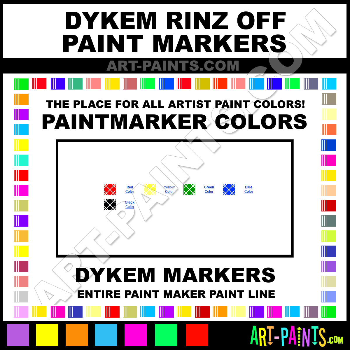 Dykem knows Paintmarkers and Paintmarker Paints! They make a wonderful brand of paint called Dykem Rinz-Off Paint Marker Colors and Marking Pens that suits all types of artists. They strive to perfect the process of color and are one of the most popular Paintmarker Brand companies in the world. Enjoy their entire paint brand collection from the list below. Dykem makes wonderful Artists Paints that everyone is sure to enjoy! Choose an Paint Marker Paint Color below to view that Hue and all their great related color paints. Paint on!     -Art-Paints.com