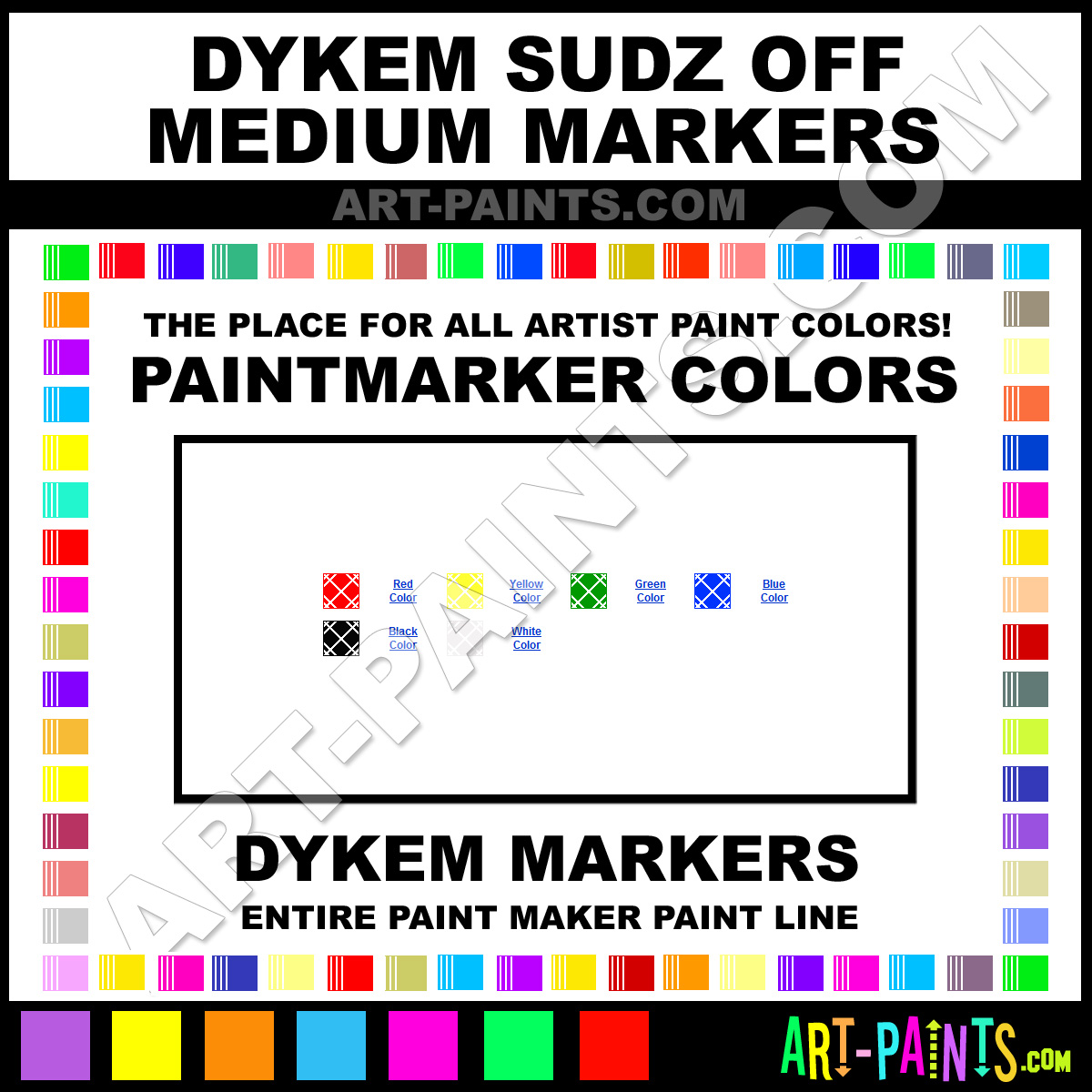 Dykem makes a beautiful Sudz Off Medium Paint Brand. With a complete line of Marking Pen Paint Marker Colors & Paints, 6 colors in all, available in beautiful hues and colors, they will no doubt keep you painting and smiling at the same time. This brand is very unique and exquisite!