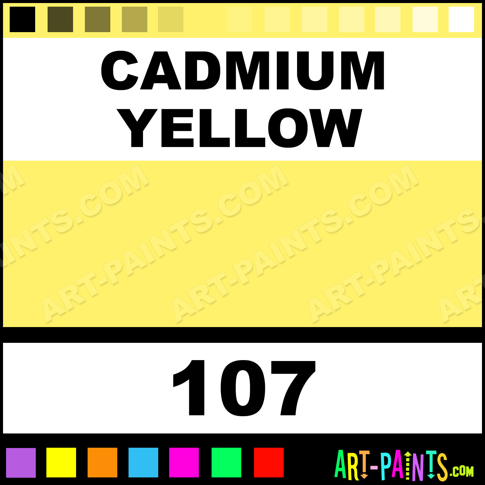 This beautiful Pitt Artist Paint Marker shade is called Cadmium Yellow, and comes from a company called Faber Castell. Their product number, along with the HTML color code, RGB, and CMYK codes are listed below. This Beautiful Shade of Cadmium Yellow and other Paintmarkers can be found in the Faber Castell Pitt Artist Art Paint Marking Pen Gallery! Also be sure to browse through the other wonderful Paintmarker Professional Color Galleries to see more of Faber Castell Pitt Artist Paint Marker Brand Paints and other Marking Pen Paint Manufacturers. And as always, Paint Paint Paint!  -Art-Paints.com
