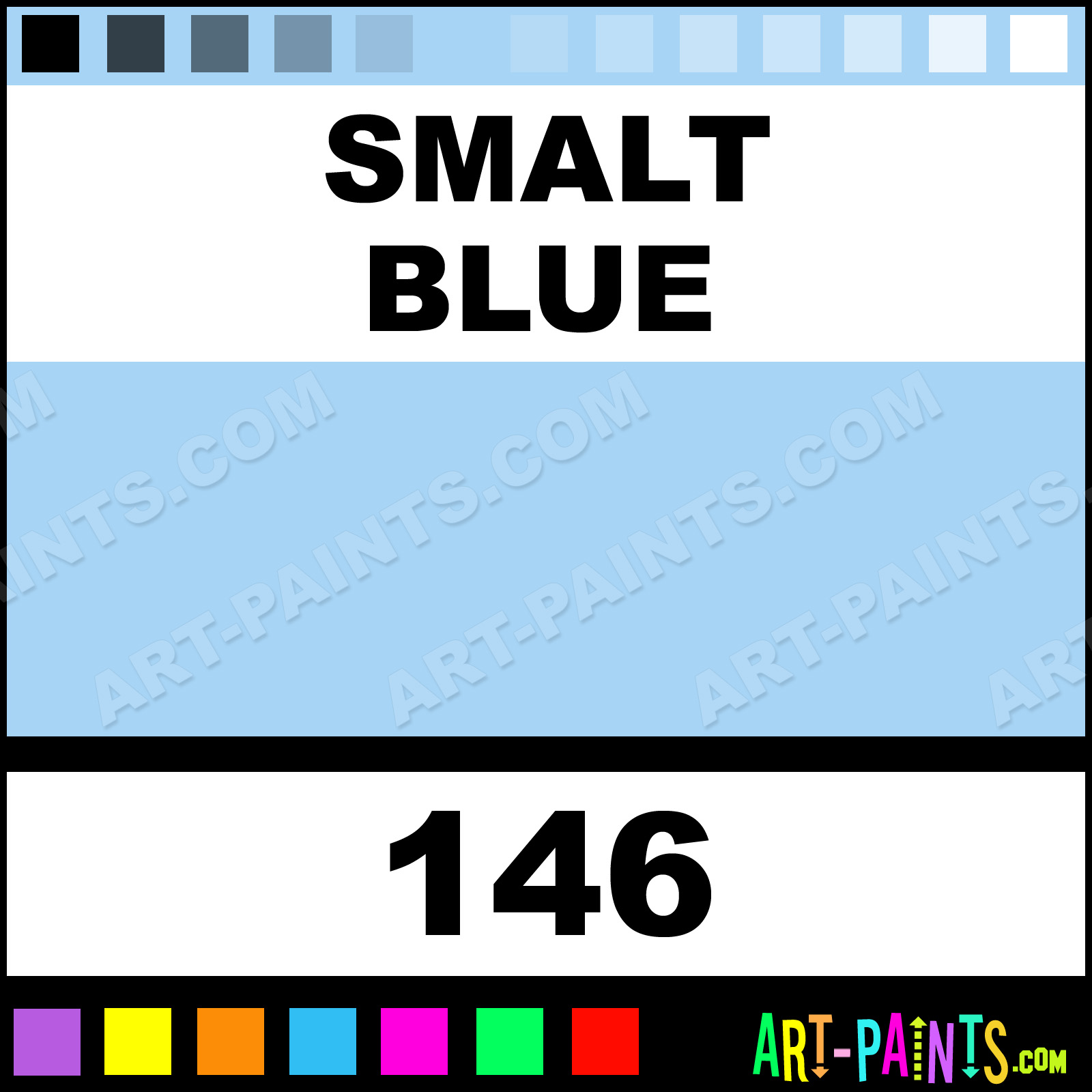 This beautiful Pitt Artist Paint Marker shade is called Smalt Blue, and comes from a company called Faber Castell. Their product number, along with the HTML color code, RGB, and CMYK codes are listed below. This Beautiful Shade of Smalt Blue and other Paintmarkers can be found in the Faber Castell Pitt Artist Art Paint Marking Pen Gallery! Also be sure to browse through the other wonderful Paintmarker Professional Color Galleries to see more of Faber Castell Pitt Artist Paint Marker Brand Paints and other Marking Pen Paint Manufacturers. And as always, Paint Paint Paint!  -Art-Paints.com
