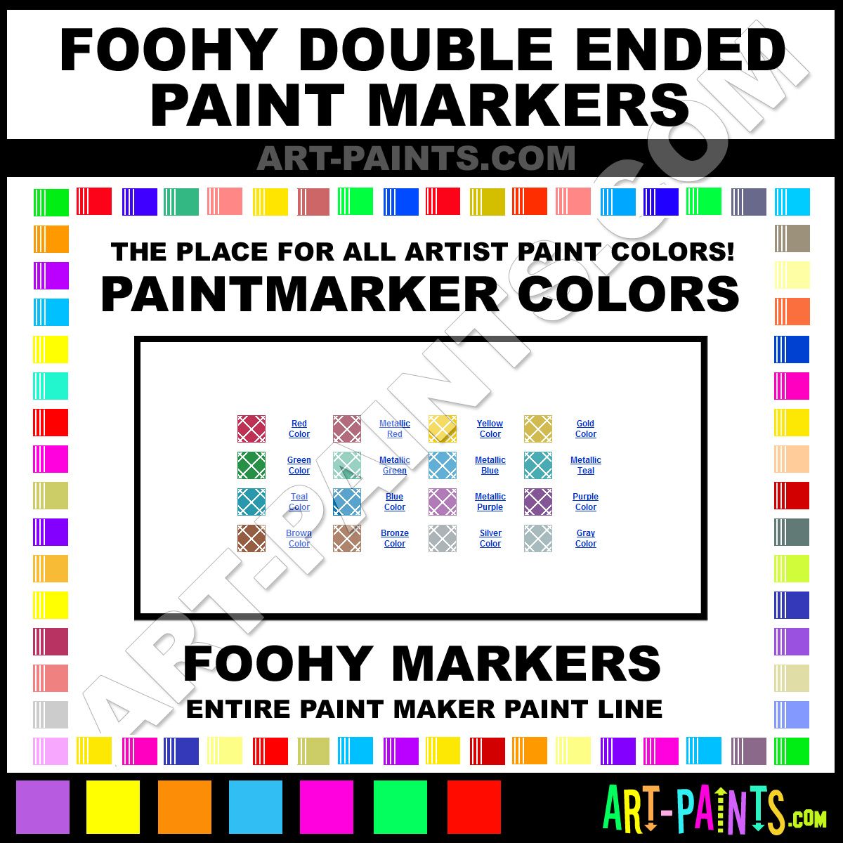 Foohy knows Marker paints! They make a wonderful brand of paint called Foohy Double Ended Paint Marker's and Marking Pen Colors that suits all types of Paintmarker artists. They strive to perfect the process of color and are one of the most popular Paint Marker Brand companies in the world. Enjoy their entire paint brand collection from the list below. Foohy makes wonderful Artists Paints that everyone is sure to enjoy! Choose a Paint Marker Paint Color below to view that Hue and all their great related color Paintmarker Paints. Paint on!     -Art-Paints.com
