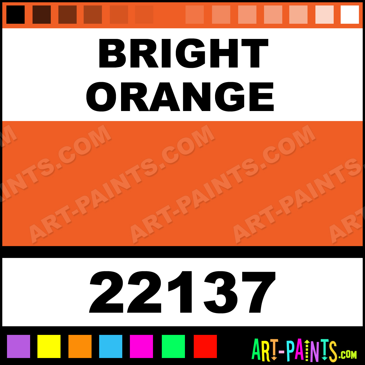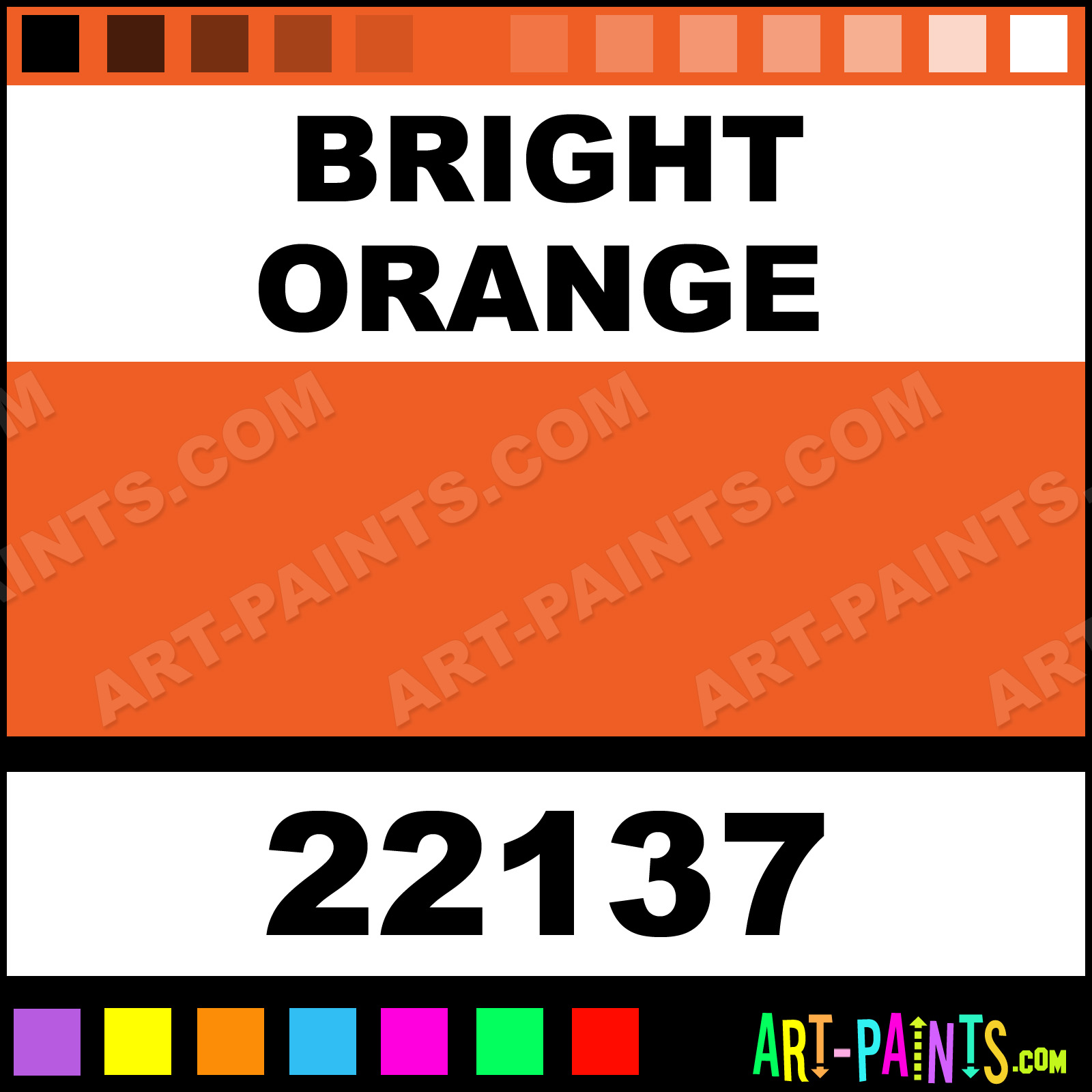This beautiful Art Markers Paint Marker shade is called Bright Orange, and comes from a company called Graphic. Their Paintmarker product number, along with the HTML color code, RGB, and CMYK codes are listed below. This Beautiful Shade of Bright Orange and other Marking Pens can be found in the Graphic Art Markers Art Paint Gallery! Also be sure to browse through the other wonderful Professional Marking Pen Color Galleries to see more of Graphic Art Markers Paintmarker Brand Paints and other Paint Marker Manufacturers. And as always, Paint Paint Paint!  -Art-Paints.com
