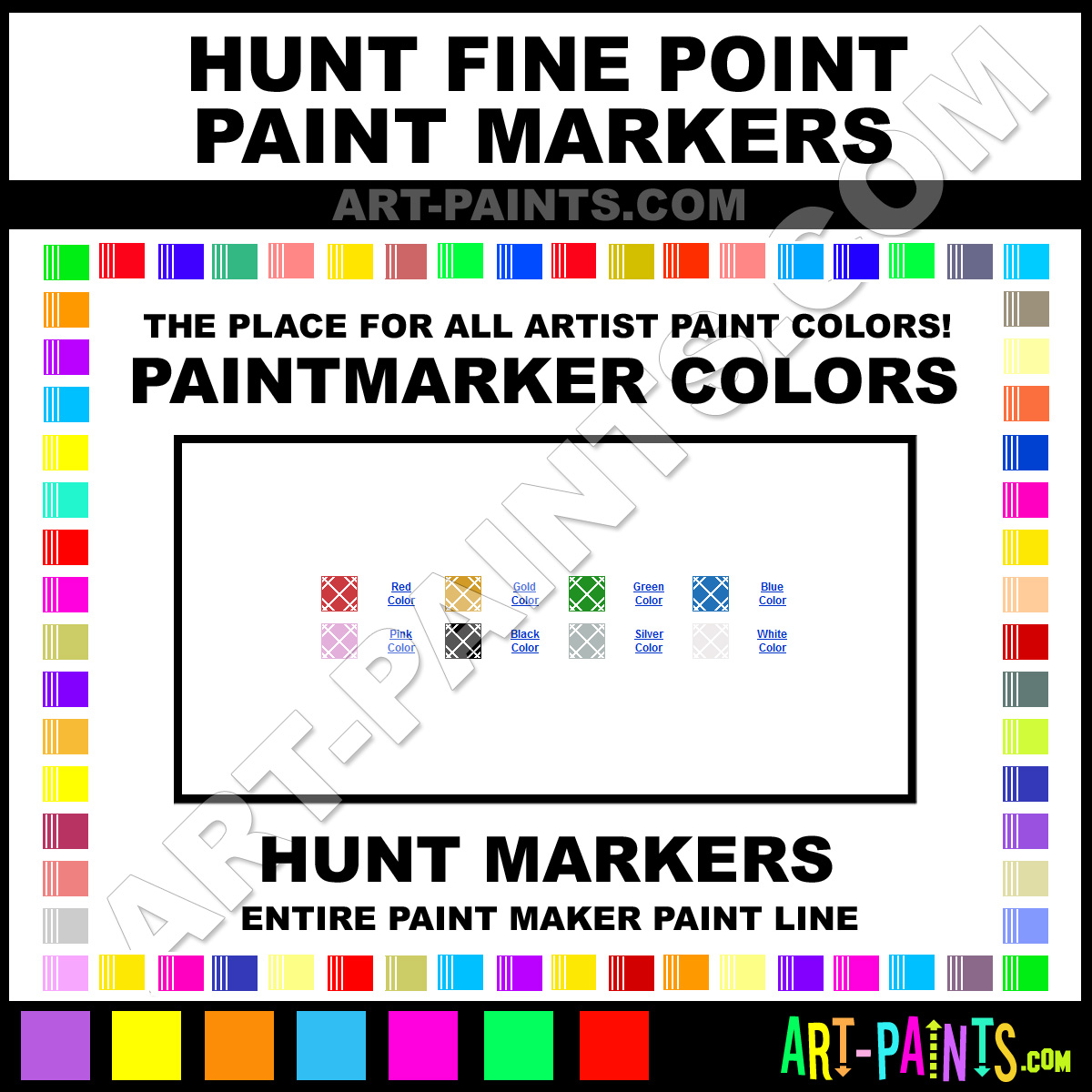 Hunt knows Paintmarkers and Paintmarker Paints! They make a wonderful brand of paint called Hunt Fine Point Paint Marker Colors and Marking Pens that suits all types of artists. They strive to perfect the process of color and are one of the most popular Paintmarker Brand companies in the world. Enjoy their entire paint brand collection from the list below. Hunt makes wonderful Artists Paints that everyone is sure to enjoy! Choose an Paint Marker Paint Color below to view that Hue and all their great related color paints. Paint on!     -Art-Paints.com