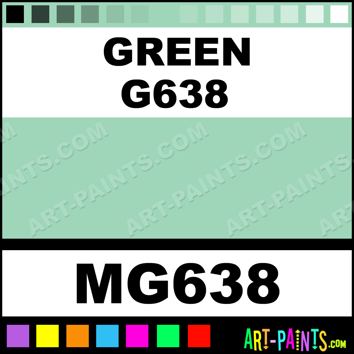 This beautiful Tria Pens Paint Marker shade is called Green G638, and comes from a company called Letraset. Their product number, along with the HTML color code, RGB, and CMYK codes are listed below. This Beautiful Shade of Green G638 and other Paintmarkers can be found in the Letraset Tria Pens Art Paint Marking Pen Gallery! Also be sure to browse through the other wonderful Paintmarker Professional Color Galleries to see more of Letraset Tria Pens Paint Marker Brand Paints and other Marking Pen Paint Manufacturers. And as always, Paint Paint Paint!  -Art-Paints.com