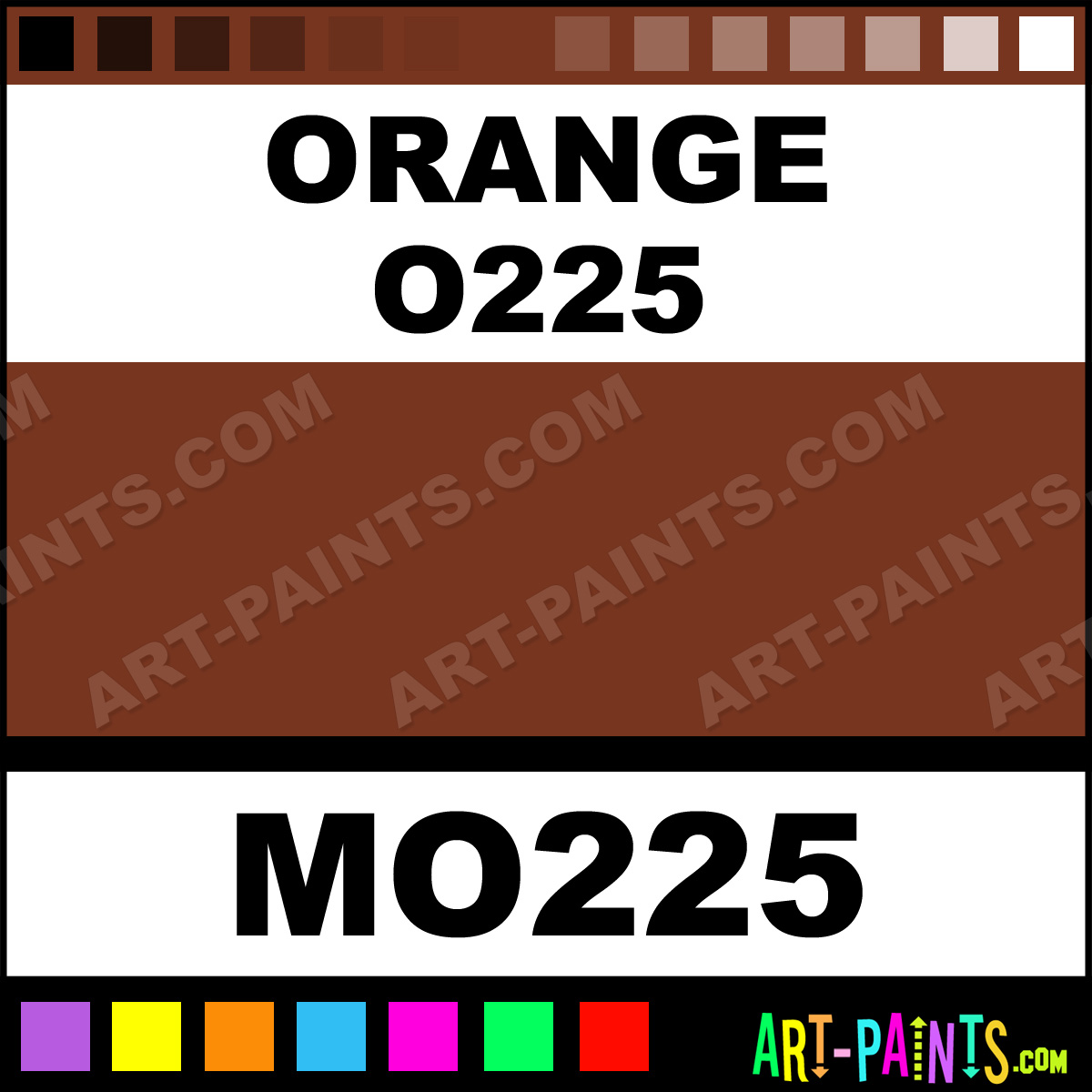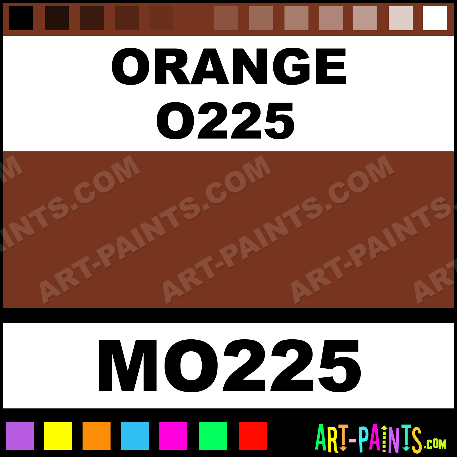This beautiful Tria Pens Paint Marker shade is called Orange O225, and comes from a company called Letraset. Their product number, along with the HTML color code, RGB, and CMYK codes are listed below. This Beautiful Shade of Orange O225 and other Paintmarkers can be found in the Letraset Tria Pens Art Paint Marking Pen Gallery! Also be sure to browse through the other wonderful Paintmarker Professional Color Galleries to see more of Letraset Tria Pens Paint Marker Brand Paints and other Marking Pen Paint Manufacturers. And as always, Paint Paint Paint!  -Art-Paints.com