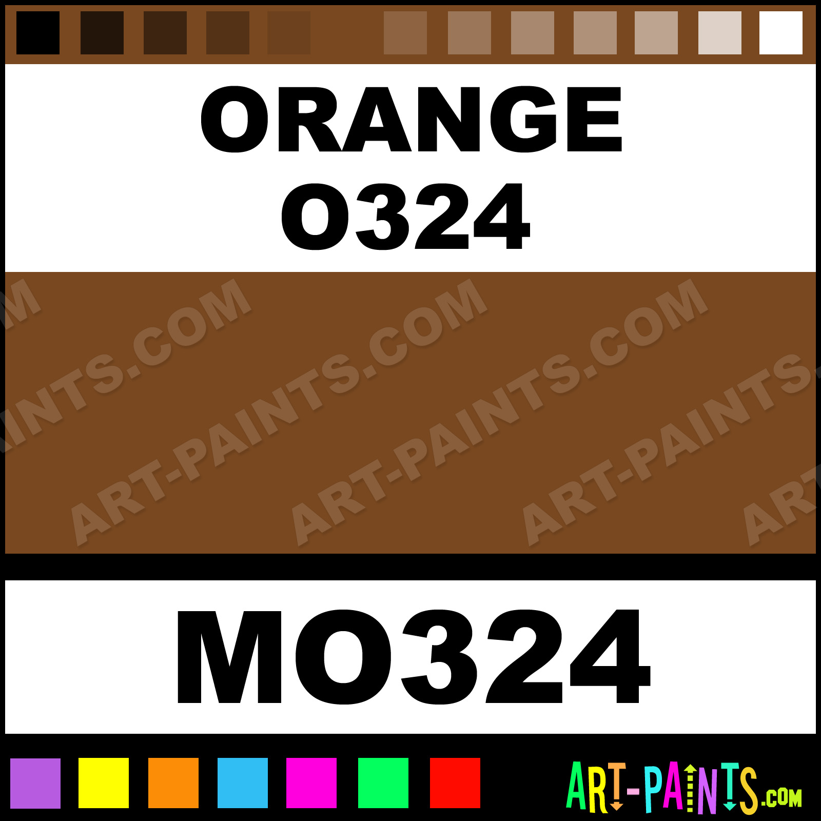 This beautiful Tria Pens Paint Marker shade is called Orange O324, and comes from a company called Letraset. Their product number, along with the HTML color code, RGB, and CMYK codes are listed below. This Beautiful Shade of Orange O324 and other Paintmarkers can be found in the Letraset Tria Pens Art Paint Marking Pen Gallery! Also be sure to browse through the other wonderful Paintmarker Professional Color Galleries to see more of Letraset Tria Pens Paint Marker Brand Paints and other Marking Pen Paint Manufacturers. And as always, Paint Paint Paint!  -Art-Paints.com